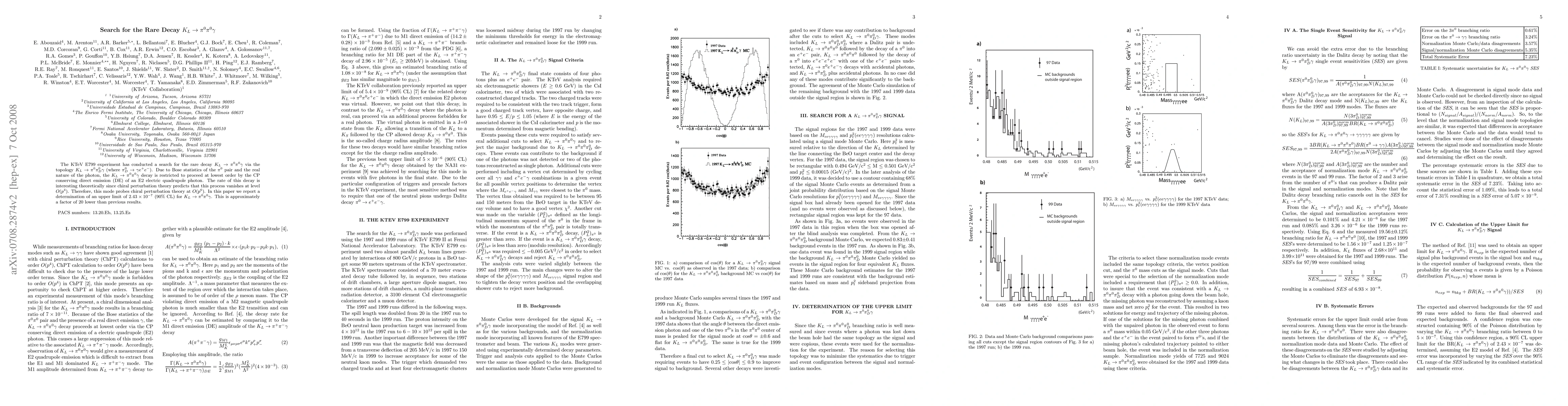 The KTeV E799 experiment searched for the rare decay $K_{L}\to\pi^{0}\pi^{0}\gamma$, finding an upper limit of $2.43\times 10^{-7}$ at 90% confidence level, significantly improving previous results by a factor of 20. This decay probes chiral perturbation theory at $O(p^6)$.