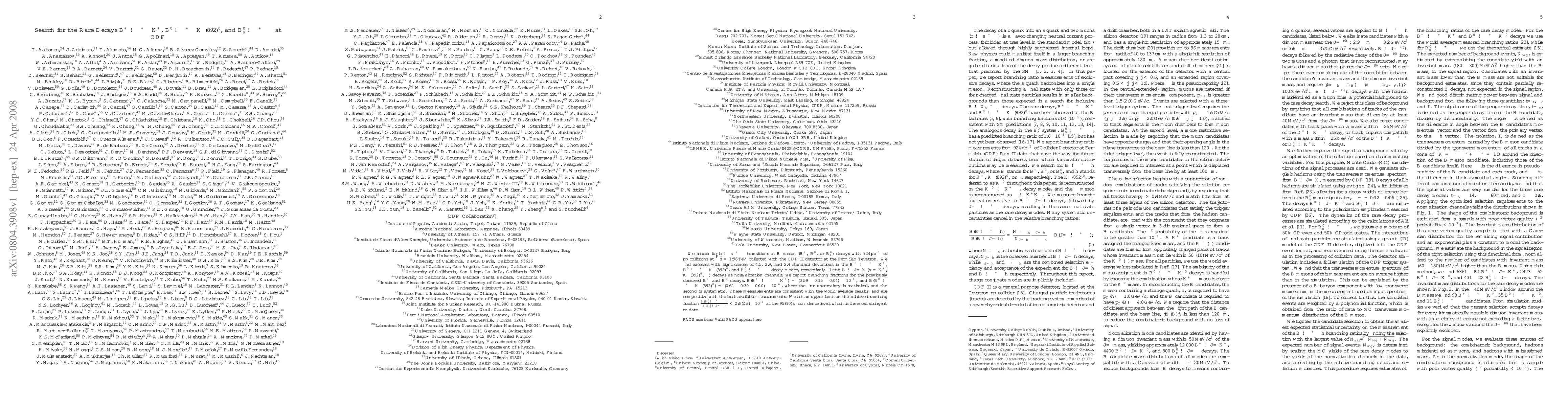 The CDF experiment at Fermilab searched for rare B meson decays involving muon pairs, observing excesses in three decay modes with significances up to 4.5 standard deviations. The branching fractions for B^+ to μ^+μ^-K^+ and B^0 to μ^+μ^-K^*(892)^0 were measured and found consistent with world averages.