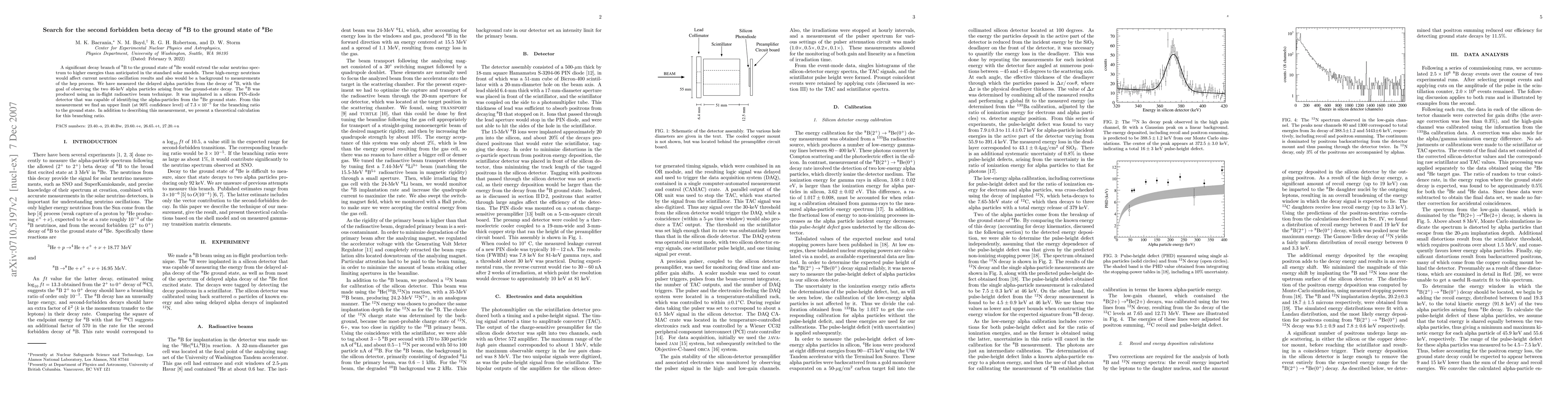 Researchers measured the decay of 8B to 8Be's ground state, finding an upper limit for the branching ratio at 7.3 x 10^-5, which could impact solar neutrino spectrum and neutrino oscillation results.