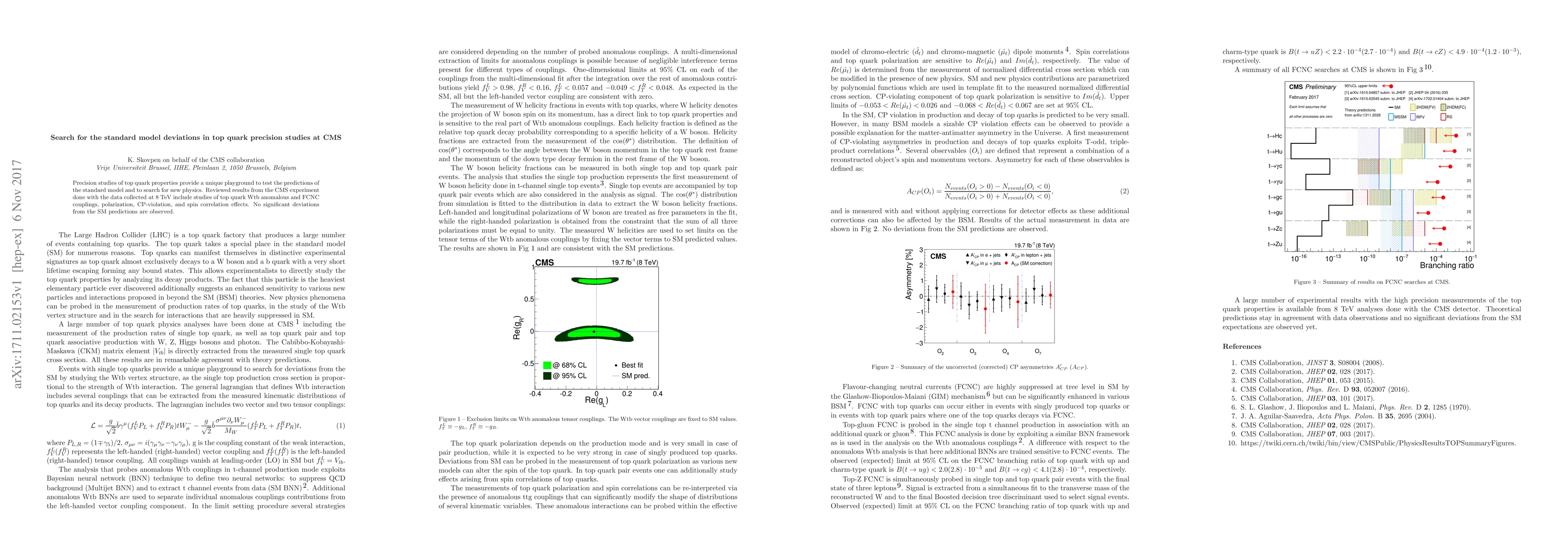 Summary: This study from the CMS experiment at 8 TeV investigates top quark properties to test Standard Model predictions, focusing on Wtb anomalous couplings, FCNC, polarization, CP-violation, and spin correlations. No significant deviations from Standard Model expectations were observed.