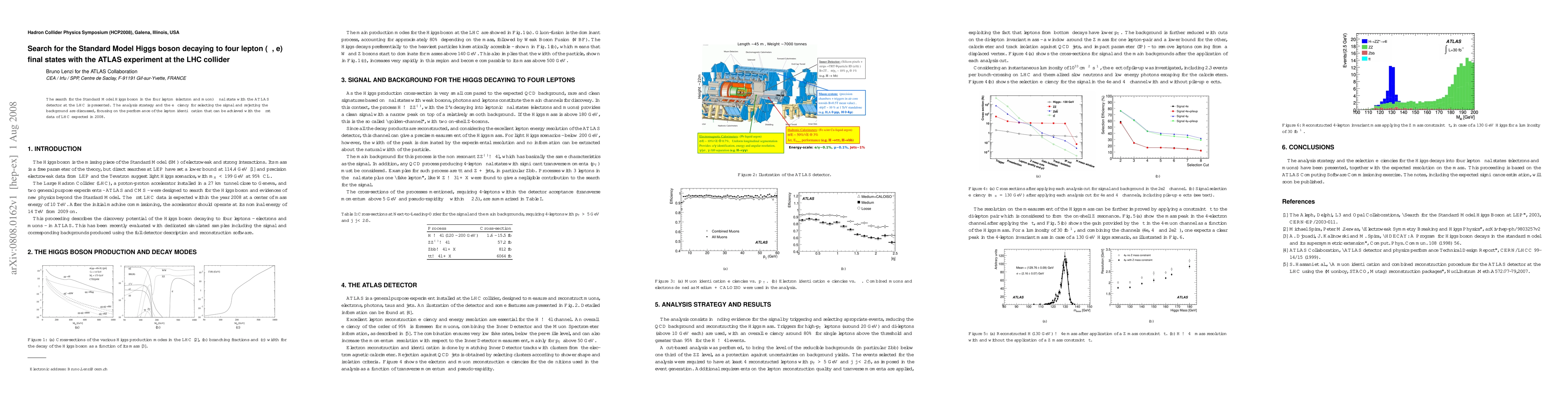 Summary: This paper presents a search for the Standard Model Higgs boson decaying into four leptons (electrons and muons) using the ATLAS detector at the LHC, detailing the analysis strategy and lepton identification efficiency to distinguish signal from background in the initial 2008 LHC data.
