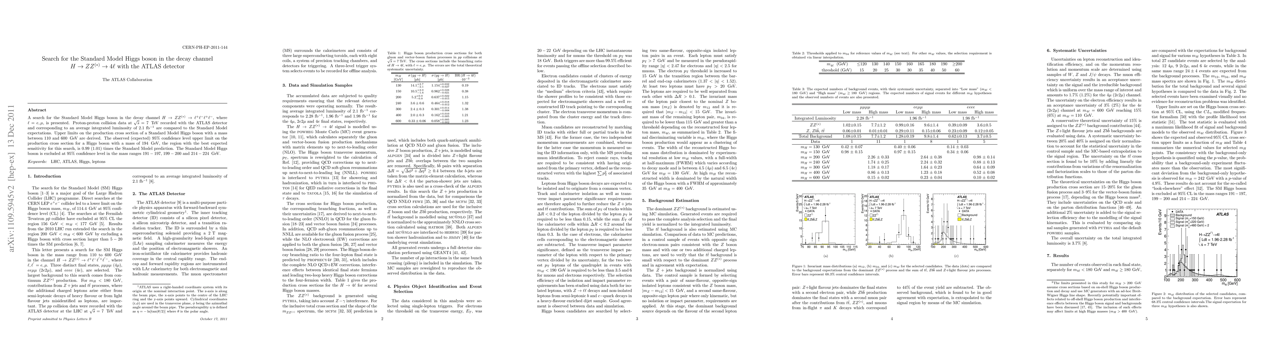 The ATLAS detector searched for the Standard Model Higgs boson in proton-proton collisions, setting 95% confidence level upper limits on its production cross section for masses between 110-600 GeV.