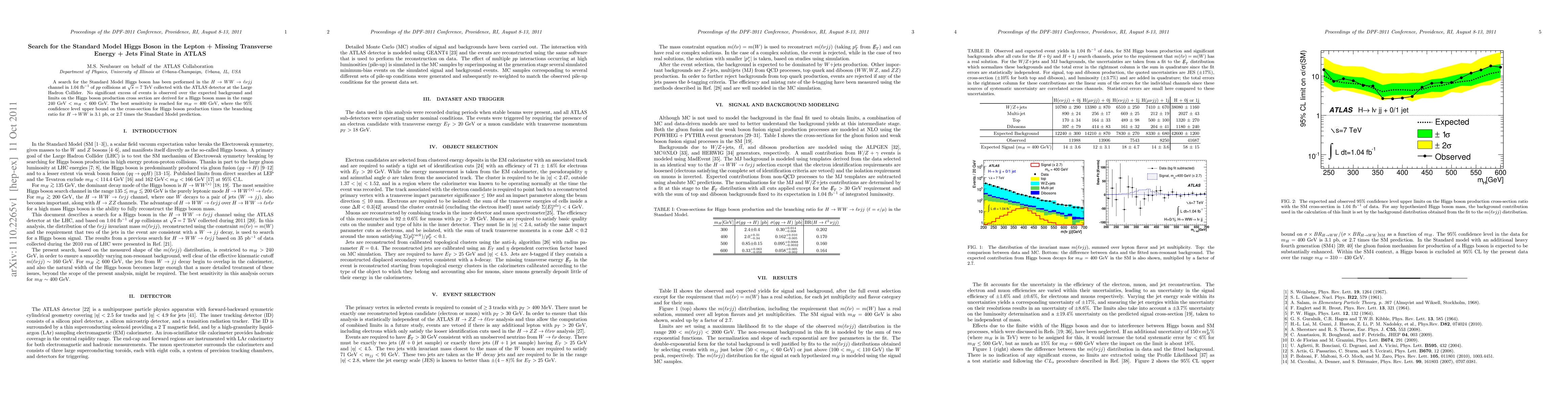 A search for the Standard Model Higgs boson has been performed in the H \rightarrow WW \rightarrow l{\nu}jj channel in 1.04 fb-1 of pp collisions at \surds = 7 TeV collected with the ATLAS detector at the Large Hadron Collider. No significant excess of events is observed over the expected background and limits on the Higgs boson production cross section are derived for a Higgs boson mass in the range 240 GeV < mH < 600 GeV. The best sensitivity is reached for mH = 400 GeV, where the 95% confidence level upper bound on the cross-section for Higgs boson production times the branching ratio for H \rightarrow W W is 3.1 pb, or 2.7 times the Standard Model prediction.