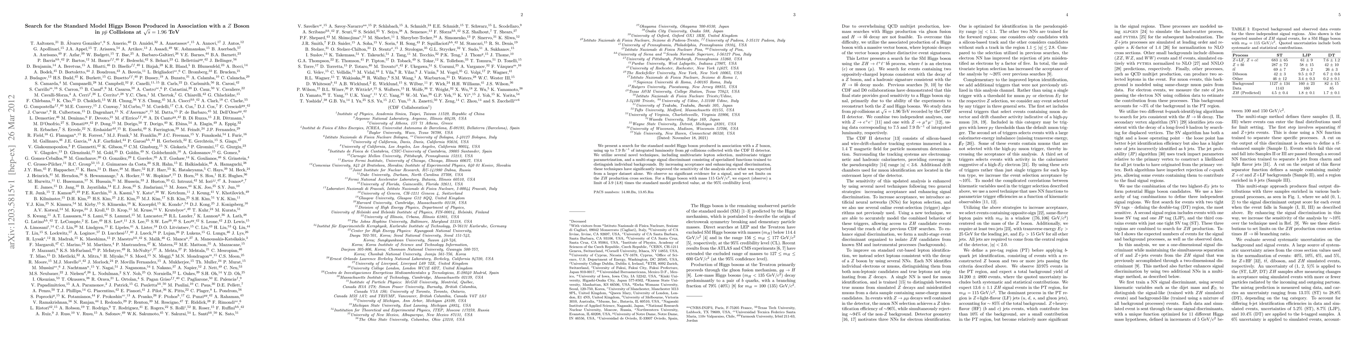 This paper reports a search for the Standard Model Higgs boson produced in association with a $Z$ boson in $p\bar{p}$ collisions at CDF II, using advanced techniques to improve signal discrimination. No significant evidence for a Higgs signal is found, and limits on the $ZH$ production cross section are set.