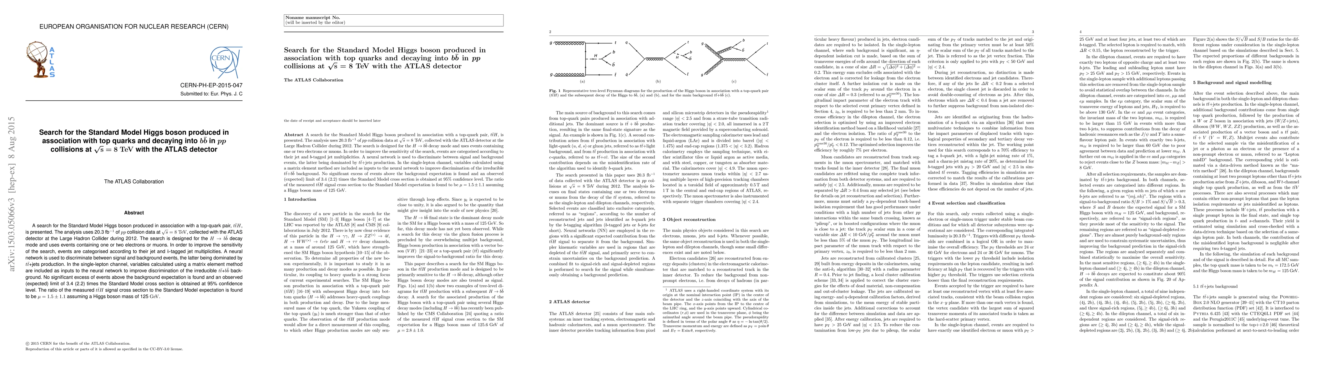 Researchers searched for the Standard Model Higgs boson produced in association with top quarks at the Large Hadron Collider, finding no significant excess of events above background expectations.