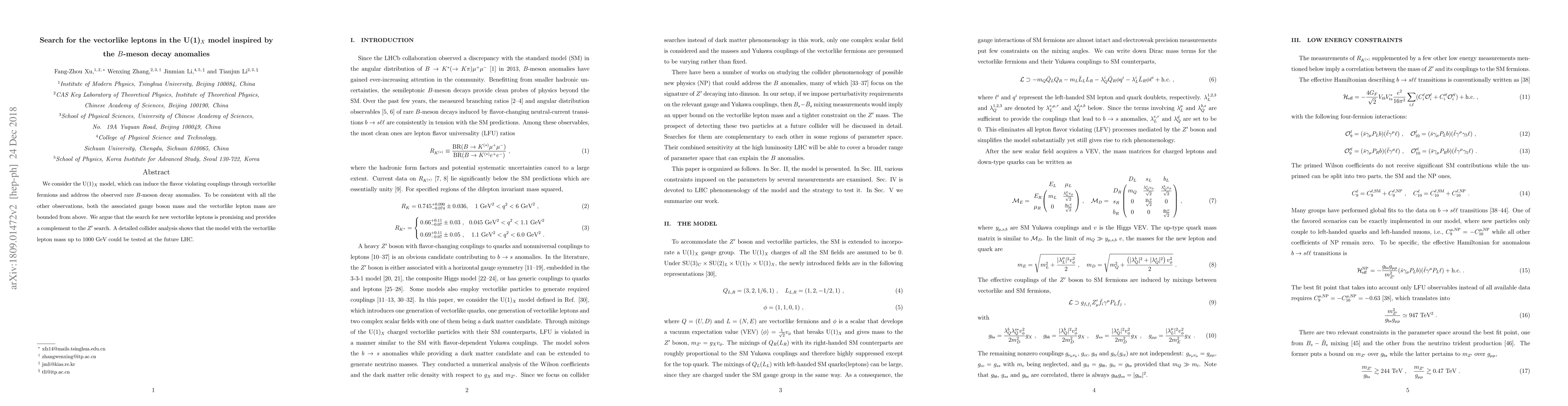 We consider the U(1)$_X$ model, which can induce the flavor violating couplings through vectorlike fermions and address the observed rare $B$-meson decay anomalies. To be consistent with all the other observations, both the associated gauge boson mass and the vectorlike lepton mass are bounded from above. We argue that the search for new vectorlike leptons is promising and provides a complement to the $Z'$ search. A detailed collider analysis shows that the model with the vectorlike lepton mass up to 1000 GeV could be tested at the future LHC.