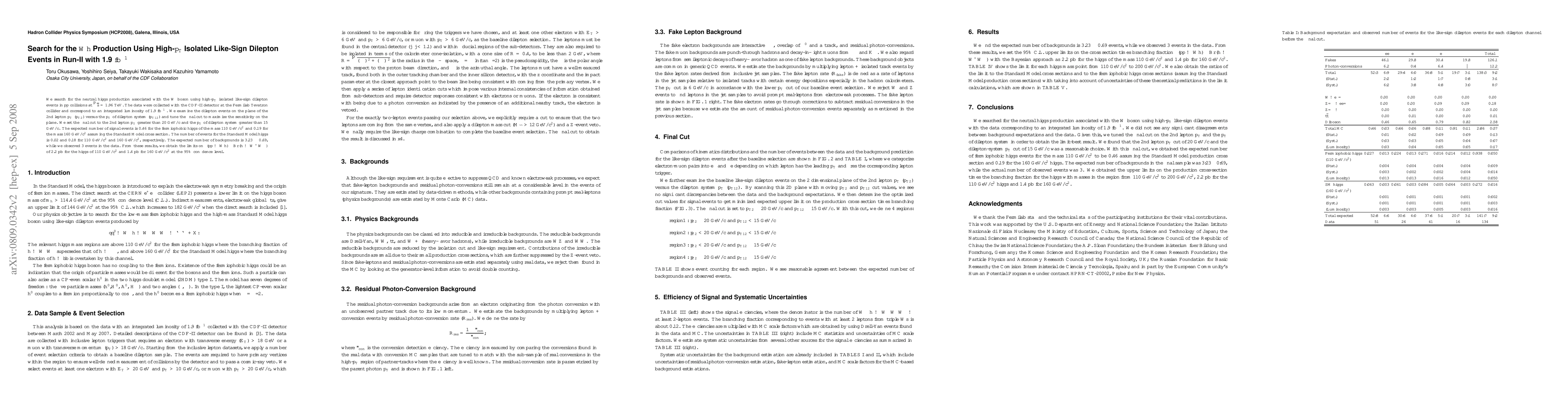 Researchers searched for the neutral higgs production associated with the W boson in high-energy collisions, setting limits on higgs production at 110 GeV/c^2 and 160 GeV/c^2.