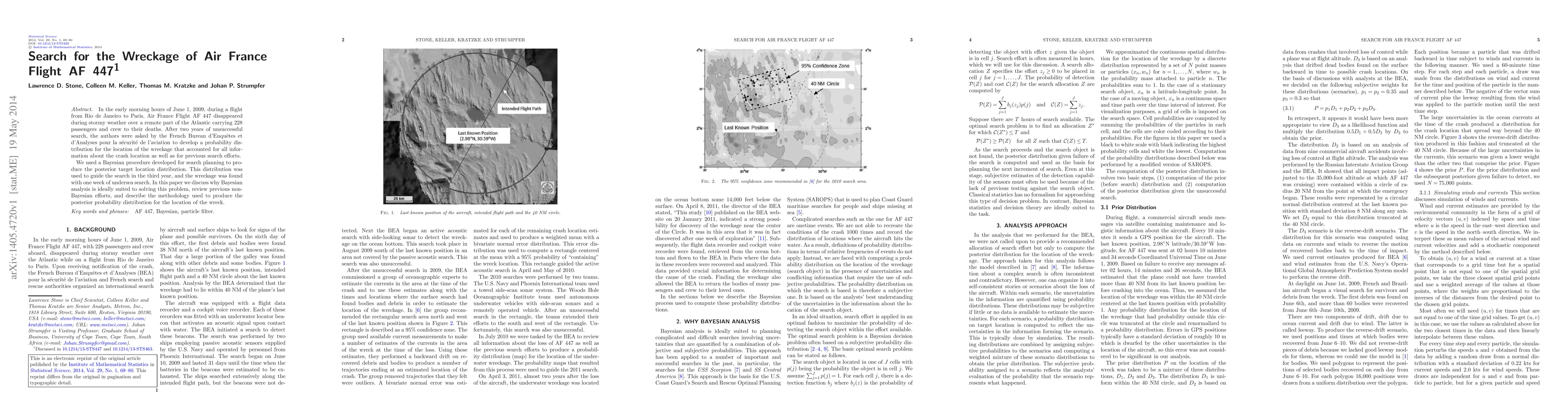 In the early morning hours of June 1, 2009, during a flight from Rio de Janeiro to Paris, Air France Flight AF 447 disappeared during stormy weather over a remote part of the Atlantic carrying 228 passengers and crew to their deaths. After two years of unsuccessful search, the authors were asked by the French Bureau d'Enqu\^{e}tes et d'Analyses pour la s\'{e}curit\'{e} de l'aviation to develop a probability distribution for the location of the wreckage that accounted for all information about the crash location as well as for previous search efforts. We used a Bayesian procedure developed for search planning to produce the posterior target location distribution. This distribution was used to guide the search in the third year, and the wreckage was found with one week of undersea search. In this paper we discuss why Bayesian analysis is ideally suited to solving this problem, review previous non-Bayesian efforts, and describe the methodology used to produce the posterior probability distribution for the location of the wreck.
