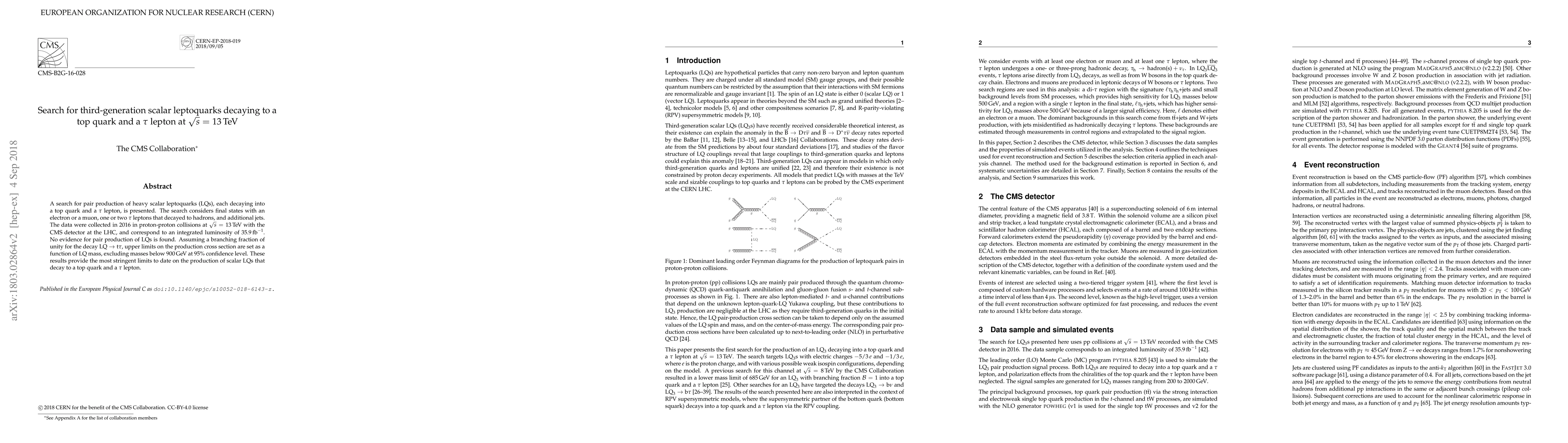 This paper reports a search for third-generation scalar leptoquarks decaying into a top quark and a $\tau$ lepton using data from the CMS detector at the LHC. No evidence for leptoquark pair production was found, leading to stringent upper limits on the production cross section, excluding masses below 900 GeV at 95% confidence level.
