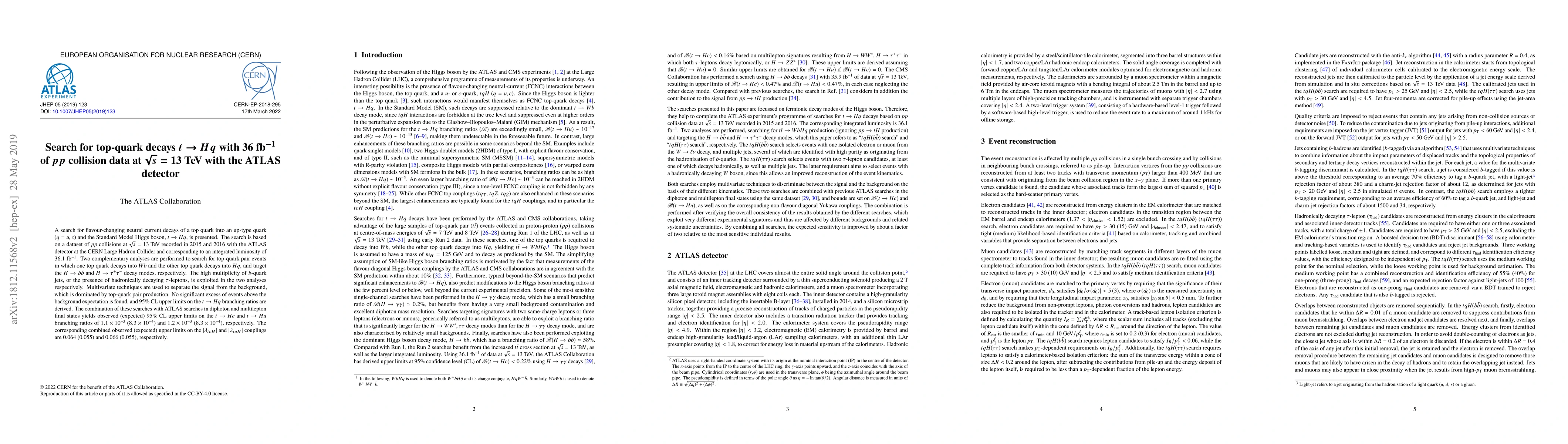 This paper investigates rare top-quark decays $t \rightarrow Hq$ using 36 fb$^{-1}$ of $pp$ collision data at $\sqrt{s}=13$ TeV from the ATLAS detector. No significant signal is observed, leading to 95% CL upper limits on the branching ratios and associated couplings.