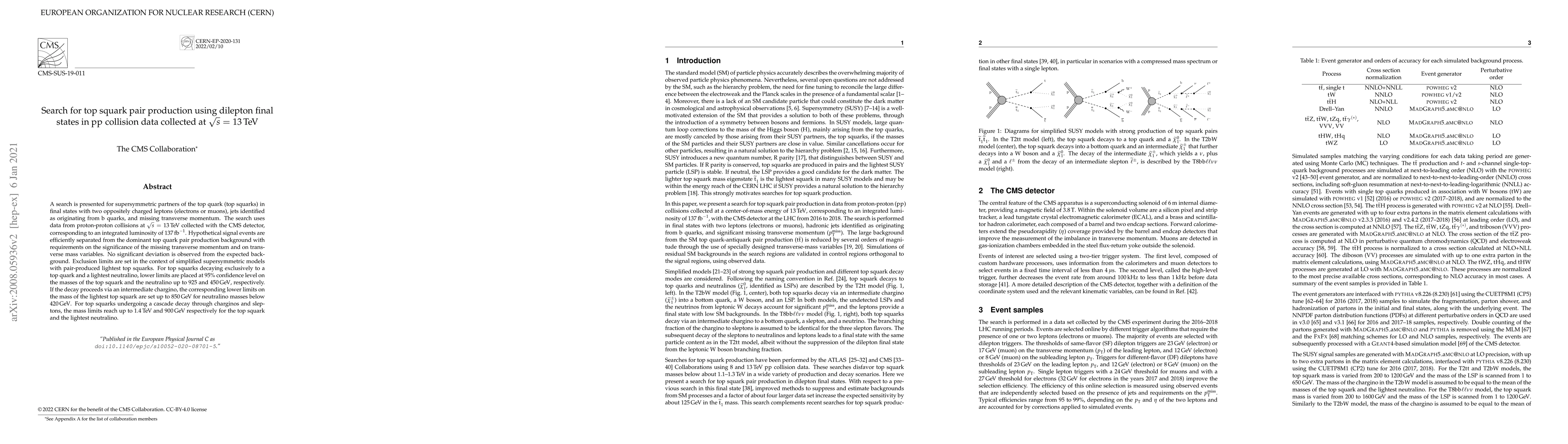 Researchers searched for top squark pair production in proton-proton collisions at 13 TeV, finding no significant deviation from expected background, but setting limits on the masses of top squarks and neutralinos in simplified supersymmetric models.