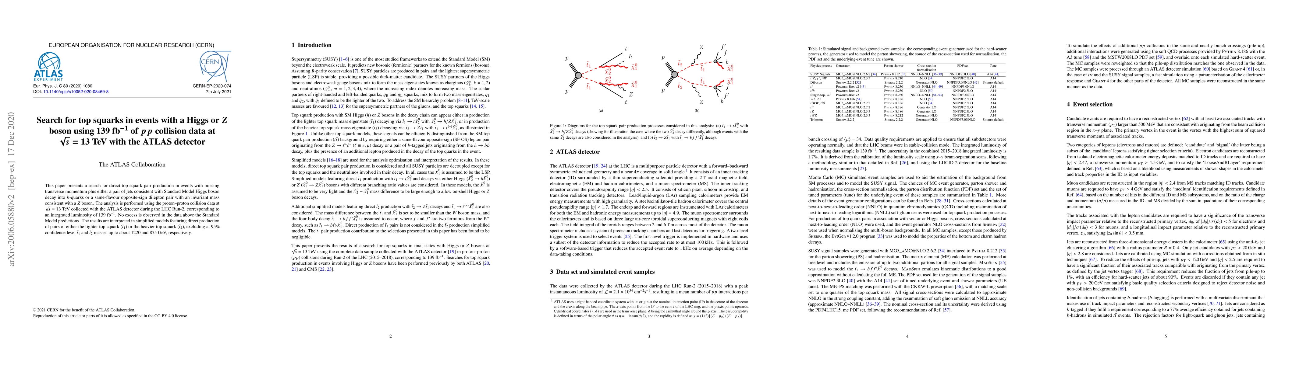 This paper presents a search for direct top squark pair production in events with missing transverse momentum plus either a pair of jets consistent with Standard Model Higgs boson decay into $b$-quarks or a same-flavour opposite-sign dilepton pair with an invariant mass consistent with a $Z$ boson. The analysis is performed using the proton-proton collision data at $\sqrt{s}=13$ TeV collected with the ATLAS detector during the LHC Run-2, corresponding to an integrated luminosity of 139 fb$^{-1}$. No excess is observed in the data above the Standard Model predictions. The results are interpreted in simplified models featuring direct production of pairs of either the lighter top squark ($\tilde{t}_1$) or the heavier top squark ($\tilde{t}_2$), excluding at 95% confidence level $\tilde{t}_1$ and $\tilde{t}_2$ masses up to about 1220 and 875 GeV, respectively.