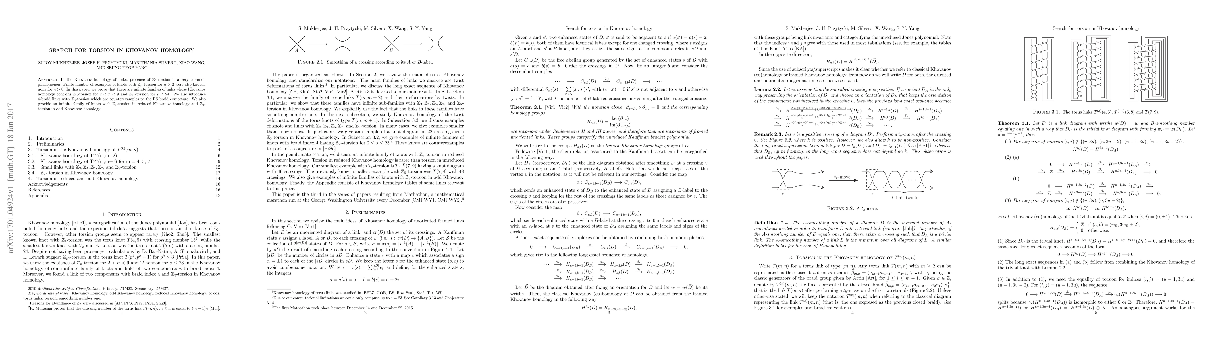 This paper demonstrates the existence of infinite families of links exhibiting $\mathbb{Z}_n$-torsion for $2 < n < 9$ and $\mathbb{Z}_{2^s}$-torsion for $s < 24$ in Khovanov homology, alongside introducing $4$-braid links with $\mathbb{Z}_3$-torsion that challenge the PS braid conjecture. Additionally, it presents an infinite family of knots with $\mathbb{Z}_5$-torsion in reduced Khovanov homology and $\mathbb{Z}_3$-torsion in odd Khovanov homology.