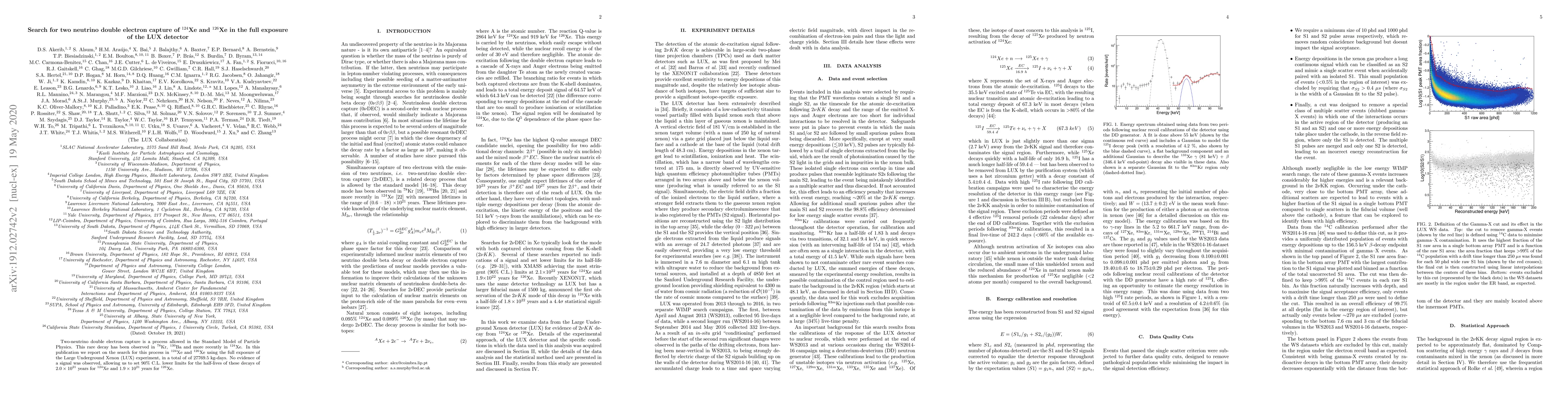 Researchers searched for two-neutrino double electron capture in 124Xe and 126Xe using the LUX detector, setting limits on their half-lives of 2x10^21 years and 1.9x10^21 years respectively.