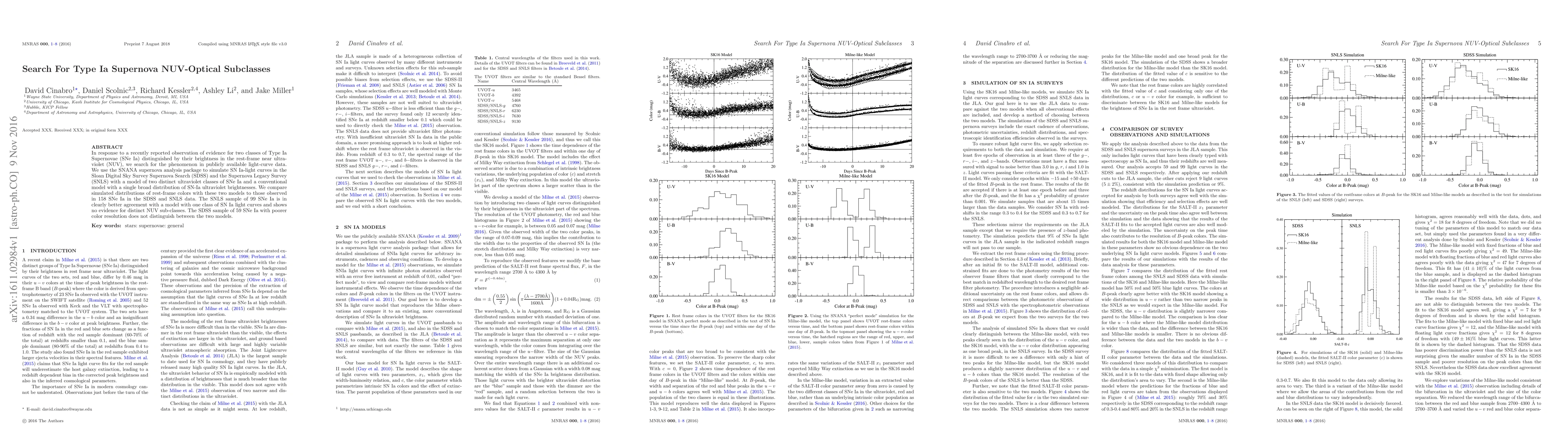 This study investigates the existence of two subclasses of Type Ia Supernovae (SNe Ia) based on their near ultraviolet brightness, using light-curve data from SDSS and SNLS. The analysis finds no evidence for distinct NUV subclasses in the SNLS sample, while the SDSS sample lacks sufficient resolution to distinguish between the models.