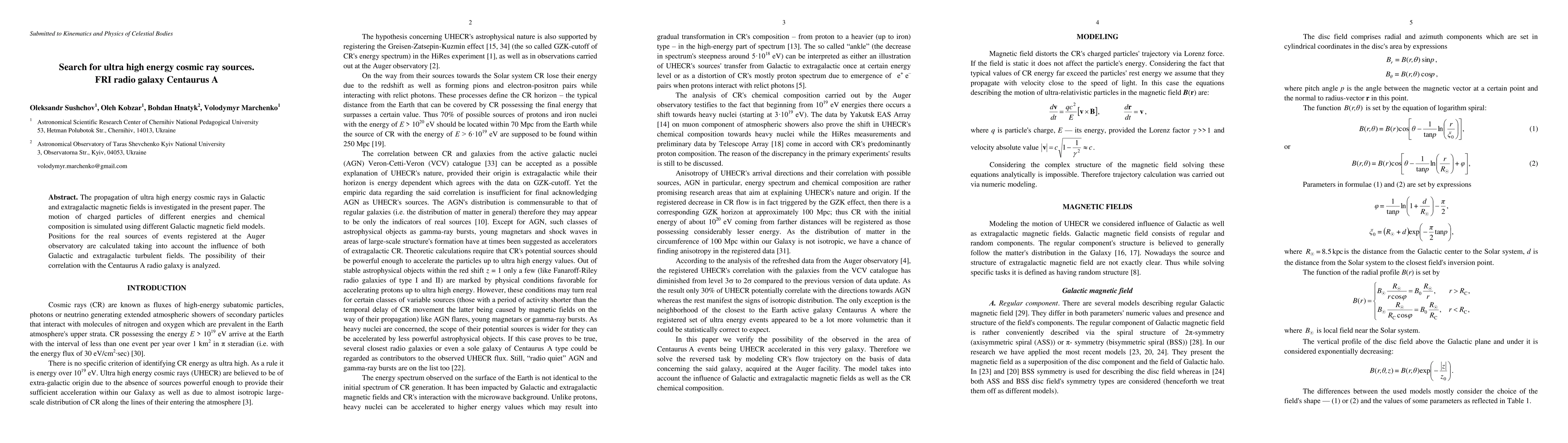 This paper investigates ultra high energy cosmic ray propagation through Galactic and extragalactic magnetic fields, simulating charged particles' motion. It analyzes potential sources of cosmic rays detected by the Auger observatory, focusing on the correlation with the Centaurus A radio galaxy.