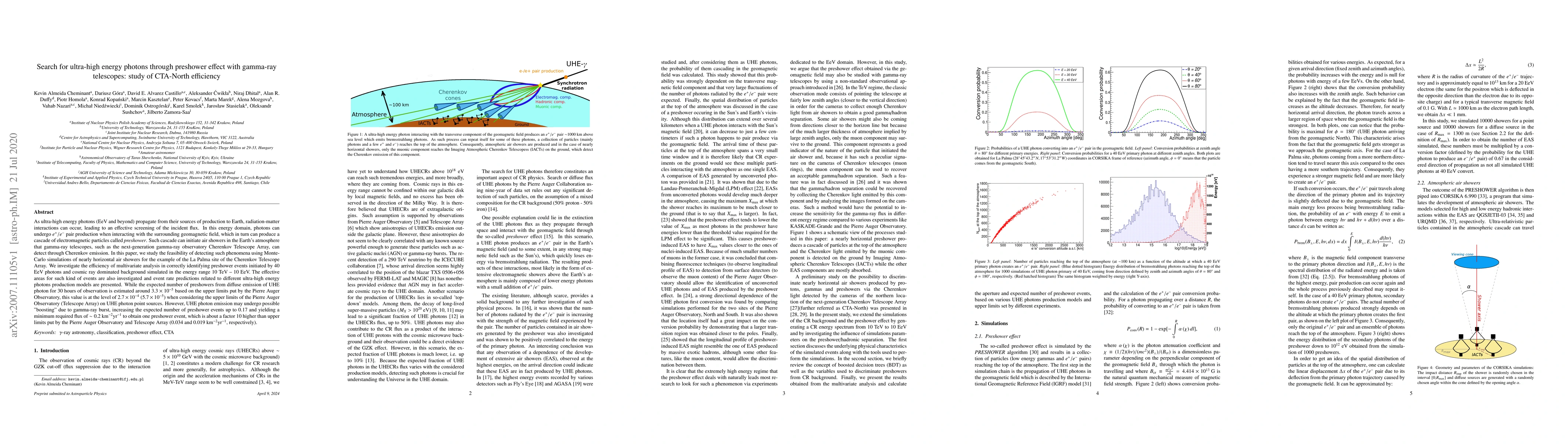 We study the feasibility of detecting preshower initiated by ultra-high energy photons using Monte-Carlo simulations of nearly horizontal air showers for the example of the La Palma site of the Cherenkov Telescope Array. We investigate the efficiency of multivariate analysis in correctly identifying preshower events initiated by 40 EeV photons and cosmic-ray dominated background simulated in the energy range 10 TeV -- 10 EeV. The effective areas for such kind of events are also investigated and event rate predictions related to different ultra-high energy photons production models are presented. While the expected number of preshowers from diffuse emission of UHE photon for 30 hours of observation is estimated around $3.3\times10^{-5}$ based on the upper limits put by the Pierre Auger Observatory, this value is at the level of $2.7\times10^{-4}$ ($5.7\times 10^{-5}$) when considering the upper limits of the Pierre Auger Observatory (Telescope Array) on UHE photon point sources. However, UHE photon emission may undergo possible "boosting" due to gamma-ray burst, increasing the expected number of preshower events up to 0.17 and yielding a minimum required flux of $\sim 0.2$ $\mathrm{km^{-2}yr^{-1}}$ to obtain one preshower event, which is about a factor 10 higher than upper limits put by the Pierre Auger Observatory and Telescope Array (0.034 and 0.019 $\mathrm{km^{-2}yr^{-1}}$, respectively).