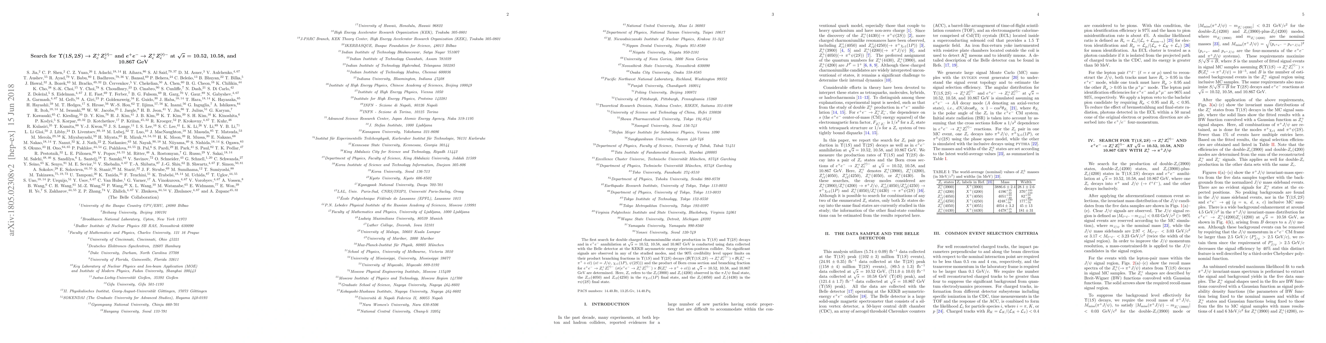 The first search for $Z_{c}$ pair production in $\Upsilon(1S)$ and $\Upsilon(2S)$ decays and in $e^{+}e^{-}$ annihilation at $\sqrt{s}$ = 10.52, 10.58, and 10.867 GeV is conducted using data collected with the Belle detector at the KEKB asymmetric energy electron-positron collider. No significant signals are observed in any of the studied modes, and the 90\% credibility level upper limits on their product branching fractions in $\Upsilon(1S)$ and $\Upsilon(2S)$ decays (${\cal B}(\Upsilon(1S,2S)\to Z^{+}_{c}Z^{(\prime) -}_{c})\times{\cal B}(Z^{+}_{c}\to\pi^{+}+c\bar c)$ ($c\bar c=J/\psi$, $\chi_{c1}(1P)$, $\psi(2S)$)) and the product of Born cross section and branching fraction for $e^{+}e^{-} \to Z^{+}_{c}Z^{(\prime) -}_{c}$ ($\sigma(e^+e^- \to Z^{+}_{c}Z^{(\prime) -}_{c})\times {\cal B}(Z^{+}_{c} \to \pi^+ +c\bar c)$) at $\sqrt{s}$ = 10.52, 10.58, and 10.867 GeV are determined. Here, $Z_{c}$ refers to the $Z_{c}(3900)$ and $Z_{c}(4200)$ observed in the $\pi J/\psi$ final state, the $Z_{c1}(4050)$ and $Z_{c2}(4250)$ in the $\pi\chi_{c1}(1P)$ state, and the $Z_{c}(4050)$ and $Z_{c}(4430)$ in the $\pi\psi(2S)$ state.