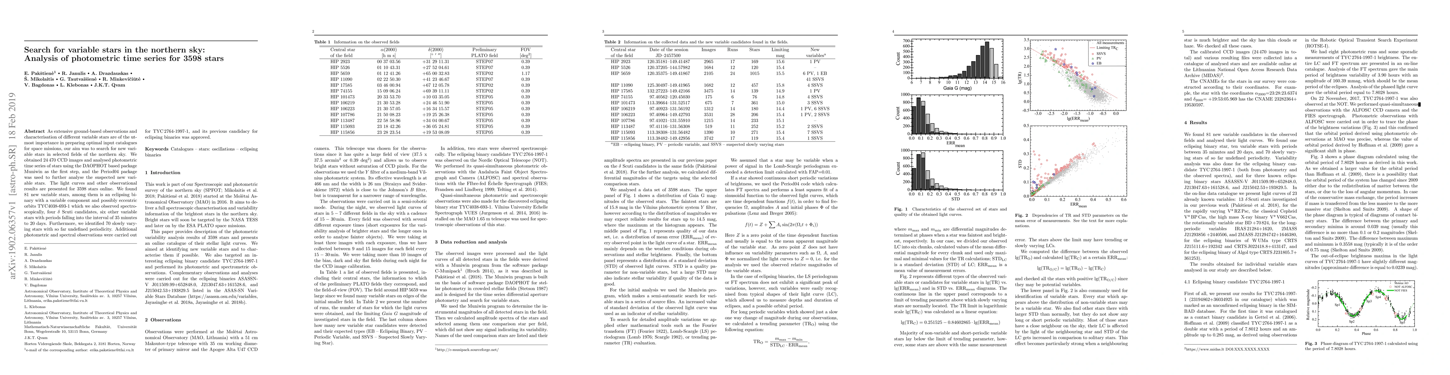 As extensive ground-based observations and characterisation of different variable stars are of the utmost importance in preparing optimal input catalogues for space missions, our aim was to search for new variable stars in selected fields of the northern sky. We obtained 24470 CCD images and analysed photometric time series of stars using the DAOPHOT based package Muniwin as the first step, and the Period04 package was used to further analyse the suspected new variable stars. The light curves and other observational results are presented for 3598 stars online. We found 81 new variable stars, among them is an eclipsing binary with a variable component and possibly eccentric orbits TYC4038-693-1 which we also observed spectroscopically, four {\delta} Scuti candidates, six other variable stars with periods falling into the interval of 35 minutes to 20 days. Furthermore, we identified 70 slowly varying stars with so far undefined periodicity. Additional photometric and spectral observations were carried out for TYC 2764-1997-1, and its previous candidacy for eclipsing binaries was approved.