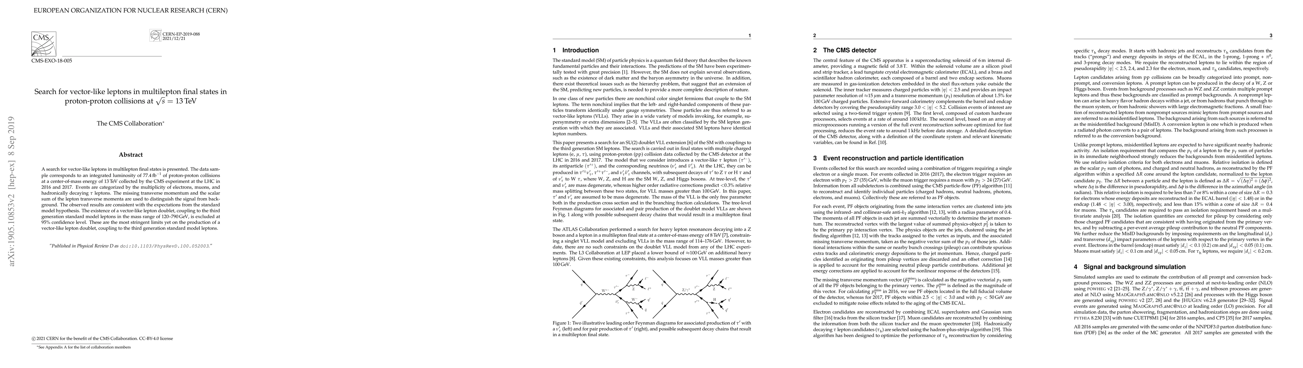 This paper reports a search for vector-like leptons in multilepton final states using data from 13 TeV proton-proton collisions collected by the CMS experiment at the LHC. No evidence for vector-like leptons was found, leading to the exclusion of their existence in the mass range of 120-790 GeV at the 95% confidence level.