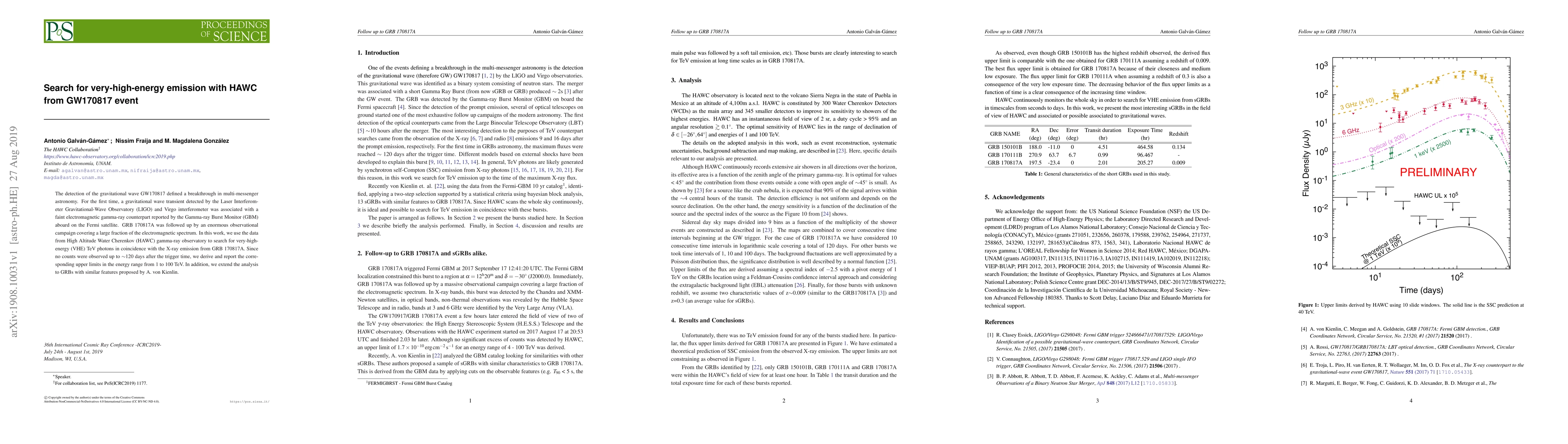 This paper reports on HAWC's search for very-high-energy TeV photons from the gravitational wave event GW170817, finding no significant emission up to 120 days post-trigger, and establishing upper limits in the 1-100 TeV energy range. The study also extends the analysis to similar gamma-ray bursts.