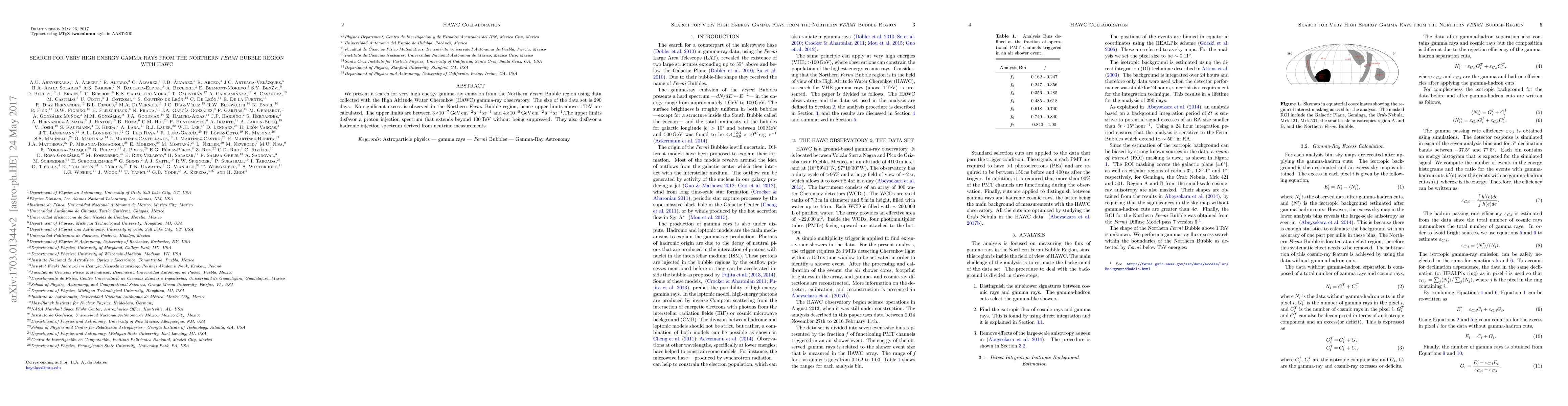 The HAWC observatory found no significant gamma-ray excess from the Northern Fermi Bubble region over 290 days, establishing upper limits above 1 TeV. These limits suggest that a proton or hadronic spectrum extending beyond 100 TeV would require suppression.