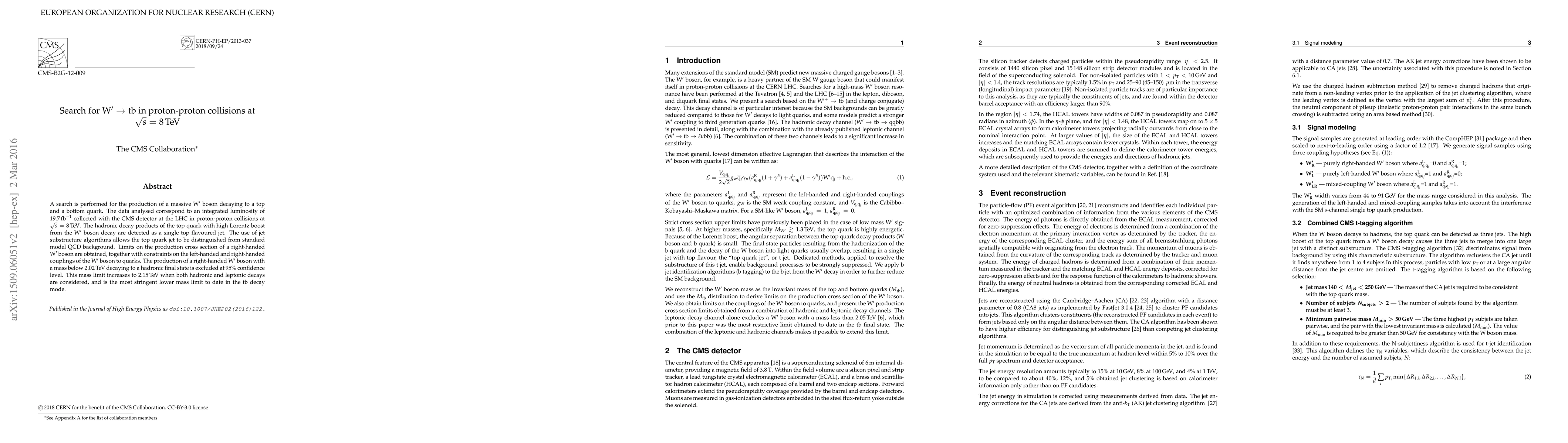 This paper reports a search for a W' boson decaying to a top and bottom quark in proton-proton collisions at 8 TeV using the CMS detector. The study excludes the production of a right-handed W' boson with a mass below 2.02 TeV in the tb decay mode at 95% confidence level, setting the most stringent lower mass limit to date.