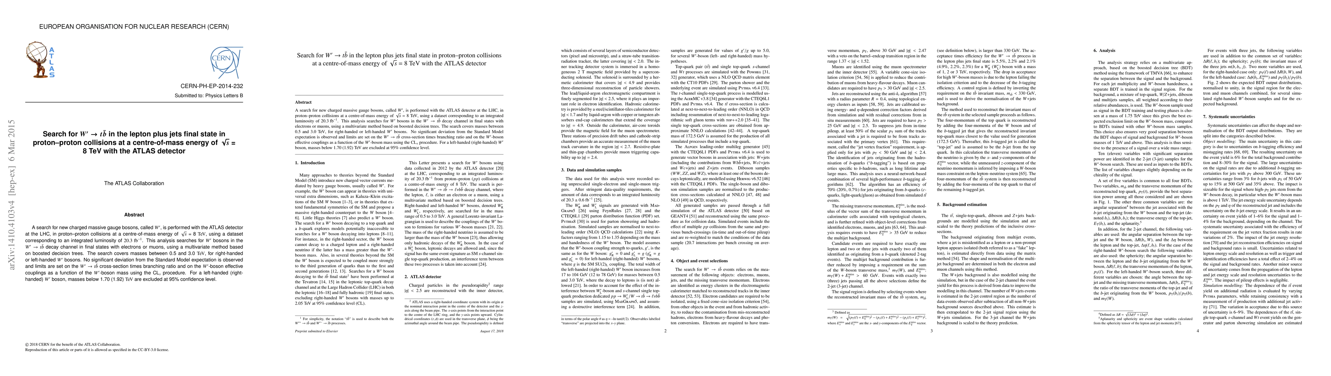 A search for a new gauge boson called $W'$ is conducted at the LHC, but no significant deviation from Standard Model expectations is found; limits are set on the $W'$ boson's properties.