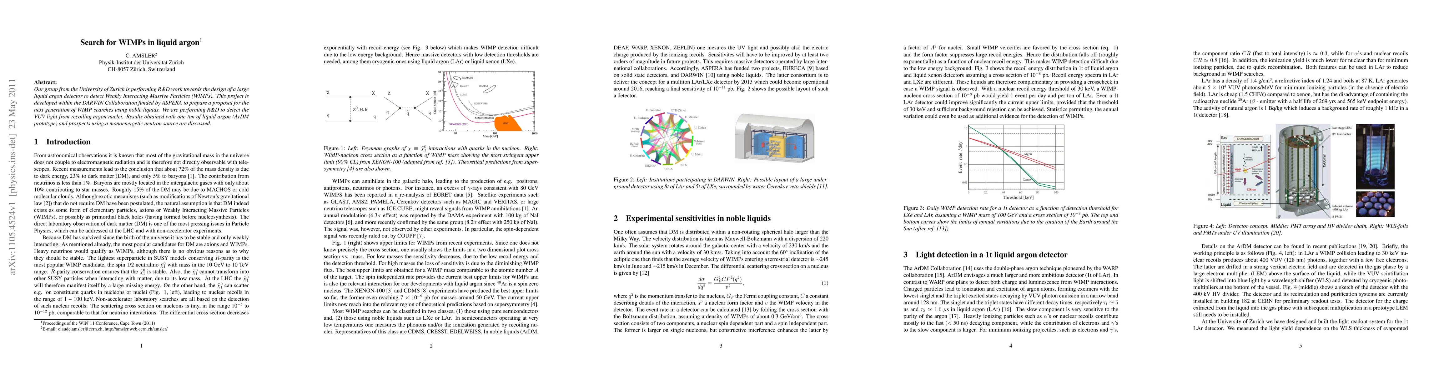 Our group from the University of Zurich is performing R&D work towards the design of a large liquid argon detector to detect Weakly Interacting Massive Particles (WIMPs). This project is developed within the DARWIN Collaboration funded by ASPERA to prepare a proposal for the next generation of WIMP searches using noble liquids. We are performing R&D to detect the VUV light from recoiling argon nuclei. Results obtained with one ton of liquid argon (ArDM prototype) and prospects using a monoenergetic neutron source are discussed.