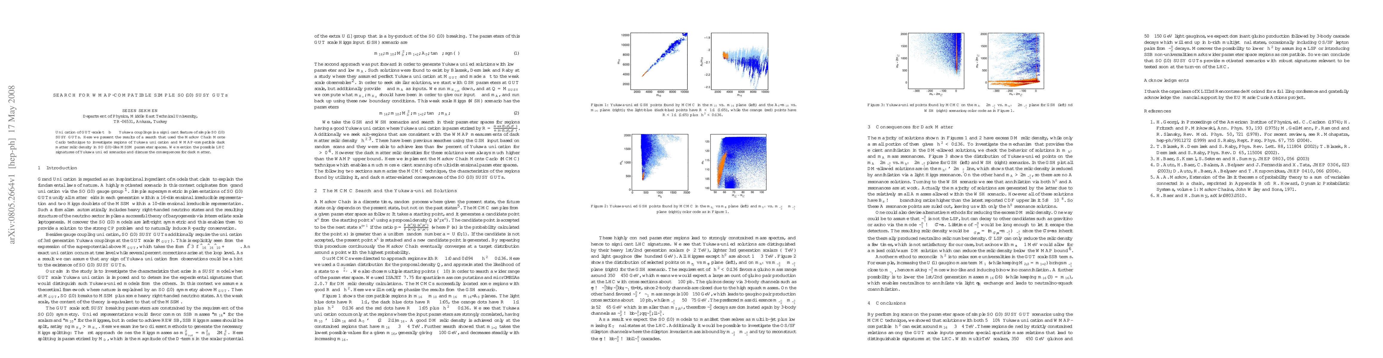 This paper explores the unification of GUT-scale Yukawa couplings in simple SO(10) SUSY GUTs using Markov Chain Monte Carlo techniques, focusing on WMAP-compatible dark matter relic densities and potential LHC signatures. The study highlights the implications for dark matter and possible experimental detections.