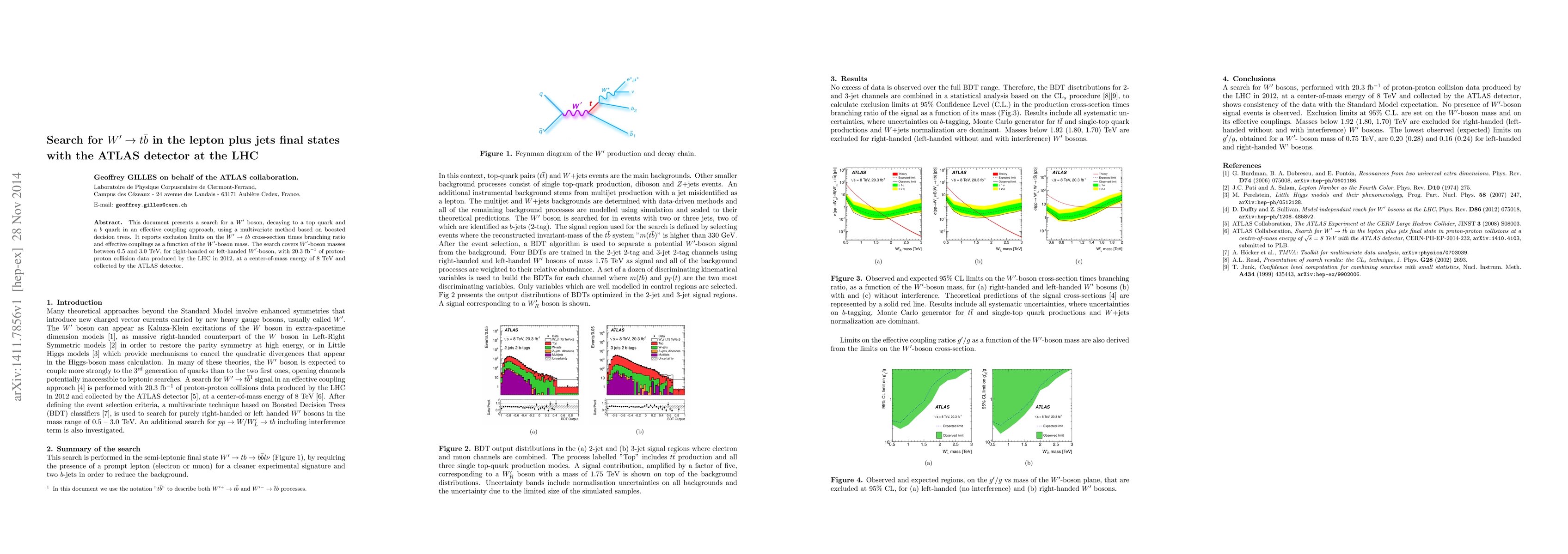 This document presents a search for a $W'$ boson, decaying to a top quark and a $b$ quark in an effective coupling approach, using a multivariate method based on boosted decision trees. It reports exclusion limits on the $W'\rightarrow tb$ cross-section times branching ratio and effective couplings as a function of the $W'$-boson mass. The search covers $W'$-boson masses between 0.5 and 3.0 TeV, for right-handed or left-handed $W'$-boson, with 20.3 fb$^{-1}$ of proton-proton collision data produced by the LHC in 2012, at a center-of-mass energy of 8 TeV and collected by the ATLAS detector.