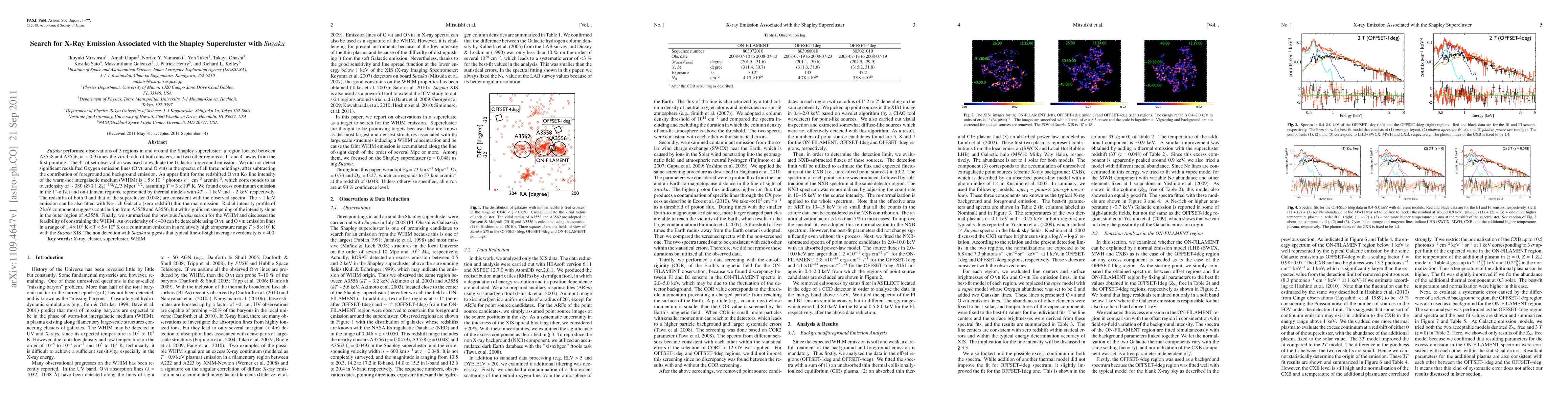 Suzaku performed observations of 3 regions in and around the Shapley supercluster: a region located between A3558 and A3556, at ~0.9 times the virial radii of both clusters, and two other regions at 1{\deg}and 4{\deg}away from the first pointing. The 4{\deg}-offset observation was used to evaluate the Galactic foreground emission. We did not detect significant redshifted Oxygen emission lines (O VII and O VIII) in the spectra of all three pointings, after subtracting the contribution of foreground and background emission. An upper limit for the redshifted O VIII Ka line intensity of the warm-hot intergalactic medium (WHIM) is 1.5 \times 10^-7 photons s^-1 cm^-2 arcmin^-2, which corresponds to an overdensity of ~380 (Z/0.1 Z_solar)^{-1/2} (L/3 Mpc)^{-1/2}, assuming T=3\times10^6 K. We found excess continuum emission in the 1{\deg}-offset and on-filament regions, represented by thermal models with kT ~1 keV and ~2 keV, respectively. The redshifts of both 0 and that of the supercluster (0.048) are consistent with the observed spectra. The ~1 keV emission can be also fitted with Ne-rich Galactic (zero redshift) thin thermal emission. Radial intensity profile of 2 keV component suggests contribution from A3558 and A3556, but with significant steepening of the intensity slope in the outer region of A3558. Finally, we summarized the previous Suzaku search for the WHIM and discussed the feasibility of constraining the WHIM. An overdensity of < 400 can be detectable using O VII and O VIII emission lines in a range of 1.4\times10^6 K < T < 5\times10^6 K or a continuum emission in a relatively high temperature range T > 5\times10^6 K with the Suzaku XIS. The non detection with Suzaku suggests that typical line-of-sight average overdensity is < 400.