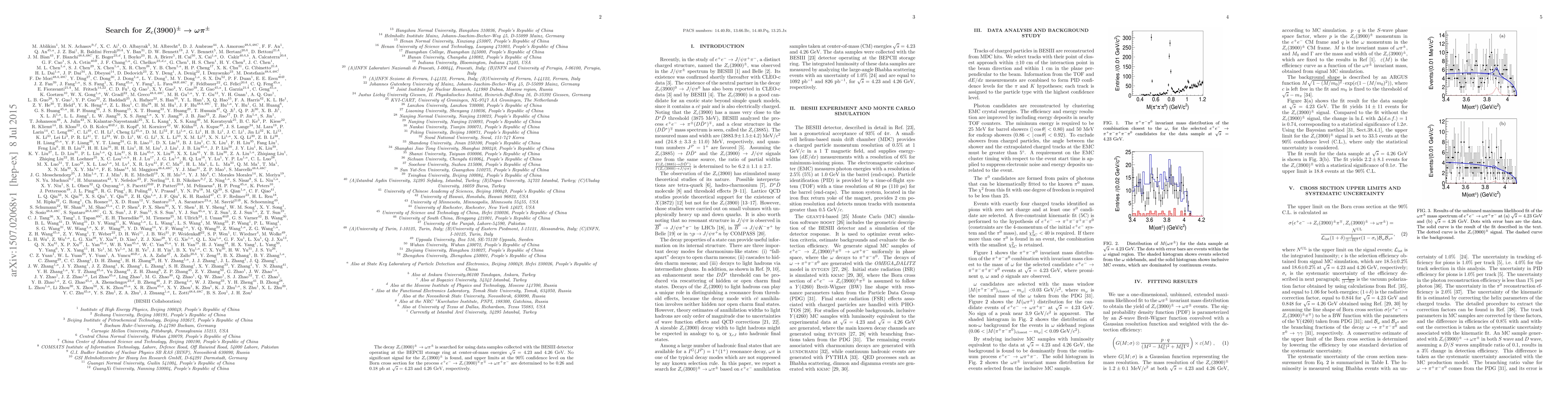 The decay $Z_c(3900)^\pm\to\omega\pi^\pm$ is searched for using data samples collected with the BESIII detector operating at the BEPCII storage ring at center-of-mass energies $\sqrt{s}=4.23$ and $4.26$~GeV. No significant signal for the $Z_c(3900)^\pm$ is found, and upper limits at the 90\% confidence level on the Born cross section for the process $e^+e^-\to Z_c(3900)^\pm\pi^\mp\to\omega\pi^+\pi^-$ are determined to be $0.26$ and $0.18$ pb at $\sqrt{s}=4.23$ and 4.26 GeV, respectively.