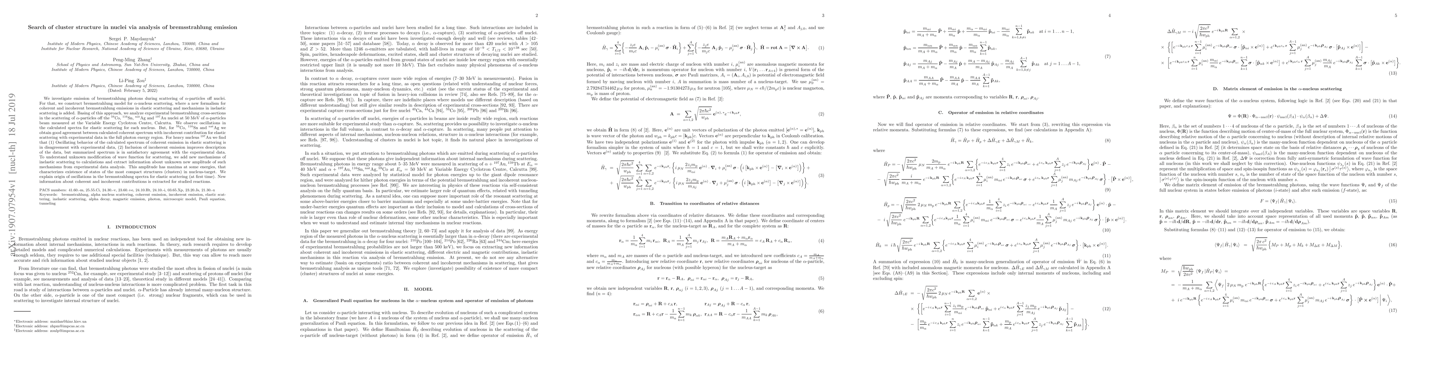 Researchers analyzed bremsstrahlung photon emissions during alpha particle scattering off various nuclei, finding agreement with experimental data for some nuclei but discrepancies for others, which led to the discovery of compact structures (clusters) in nucleus-targets.