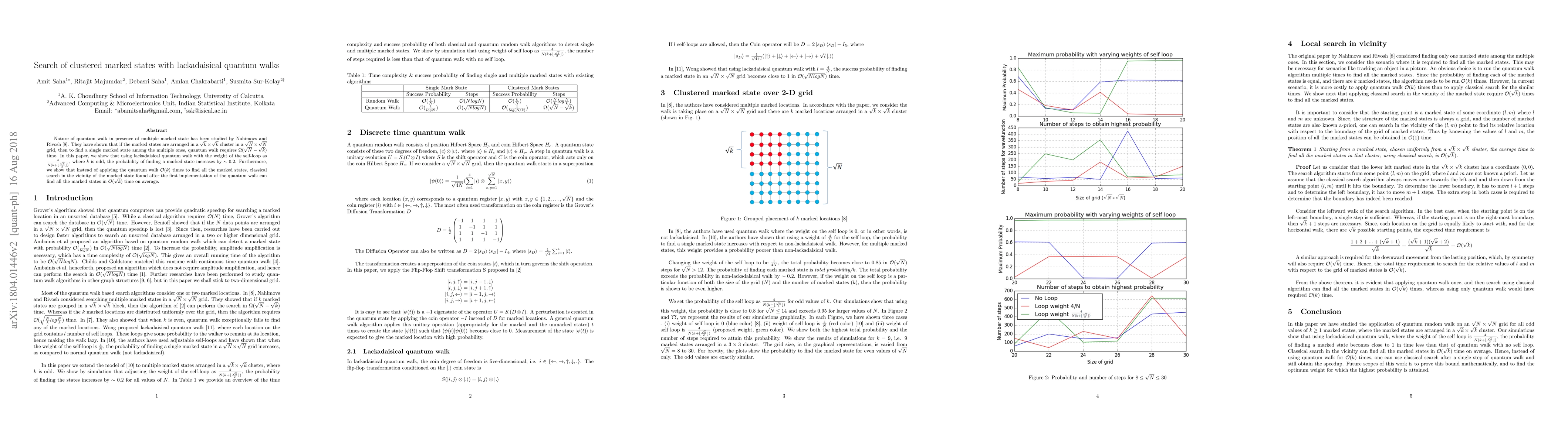 Quantum walk can find marked states more efficiently with a new weighting scheme, increasing probability by ~0.2, and allowing for faster classical search in nearby areas.