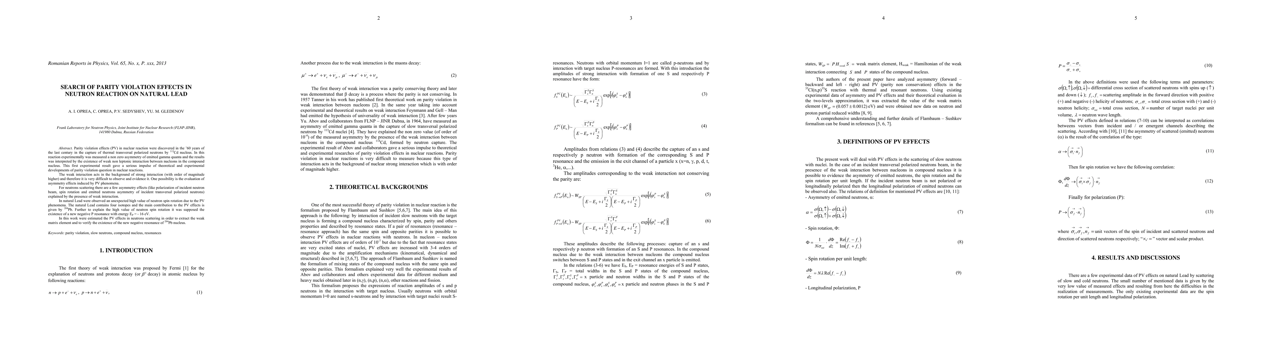 Researchers investigated parity violation effects in neutron reactions on natural Lead, discovering a high value of neutron spin rotation attributed to a new negative P resonance with an energy of -16 eV.