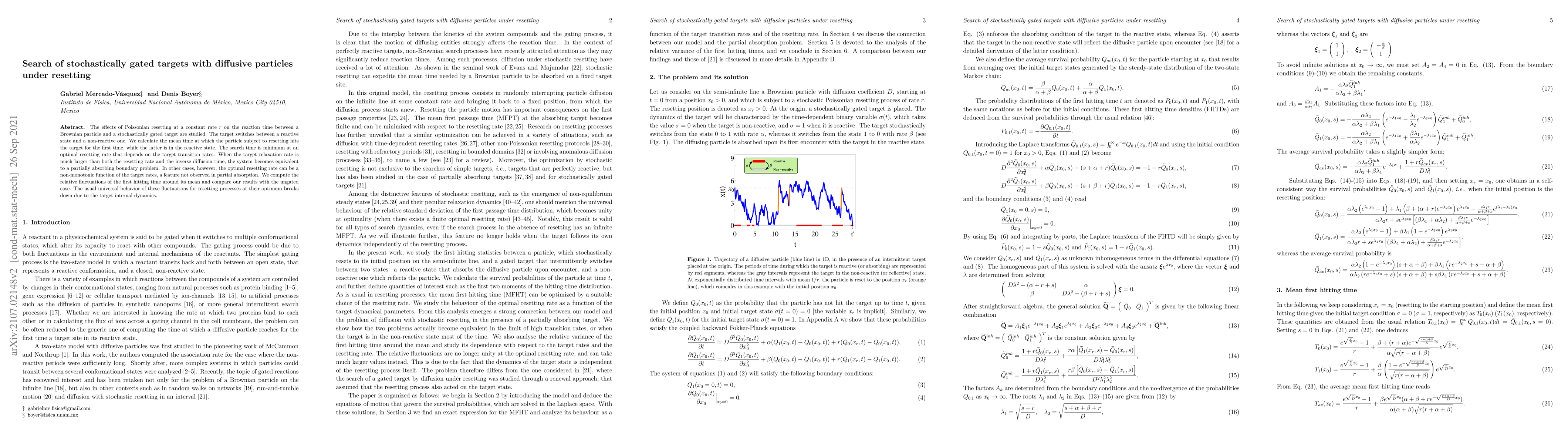 The effects of Poissonian resetting at a constant rate $r$ on the reaction time between a Brownian particle and a stochastically gated target are studied. The target switches between a reactive state and a non-reactive one. We calculate the mean time at which the particle subject to resetting hits the target for the first time, while the latter is in the reactive state. The search time is minimum at a resetting rate that depends on the target transition rates. When the target relaxation rate is much larger than both the resetting rate and the inverse diffusion time, the system becomes equivalent to a partially absorbing boundary problem. In other cases, however, the optimal resetting rate can be a non-monotonic function of the target rates, a feature not observed in partial absorption. We compute the relative fluctuations of the first hitting time around its mean and compare our results with the ungated case. The usual universal behavior of these fluctuations for resetting processes at their optimum breaks down due to the target internal dynamics.