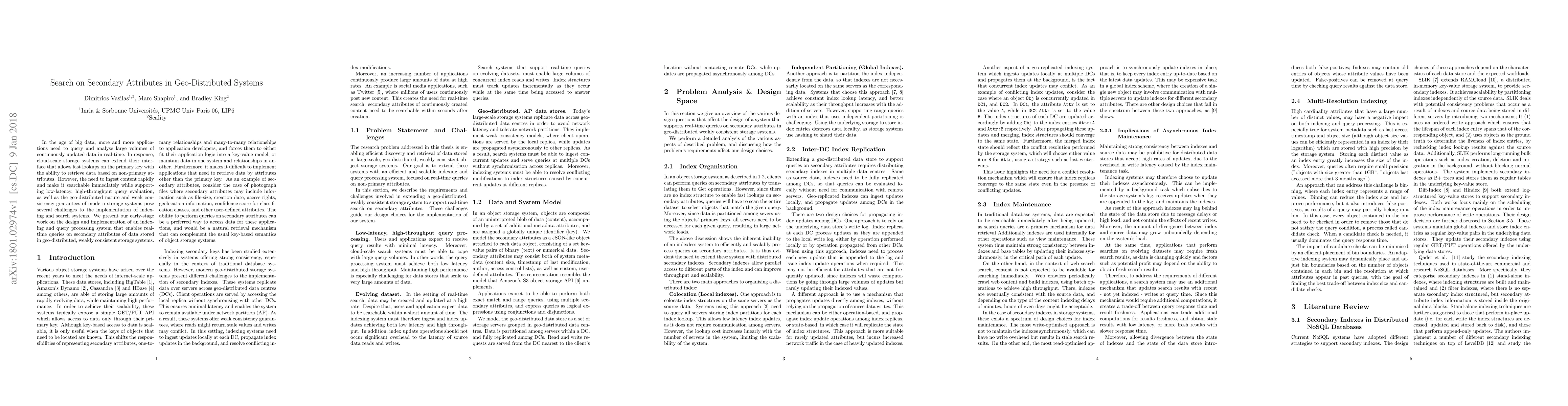 Researchers designed an indexing system to enable real-time queries on secondary attributes in geo-distributed storage systems with weak consistency guarantees.