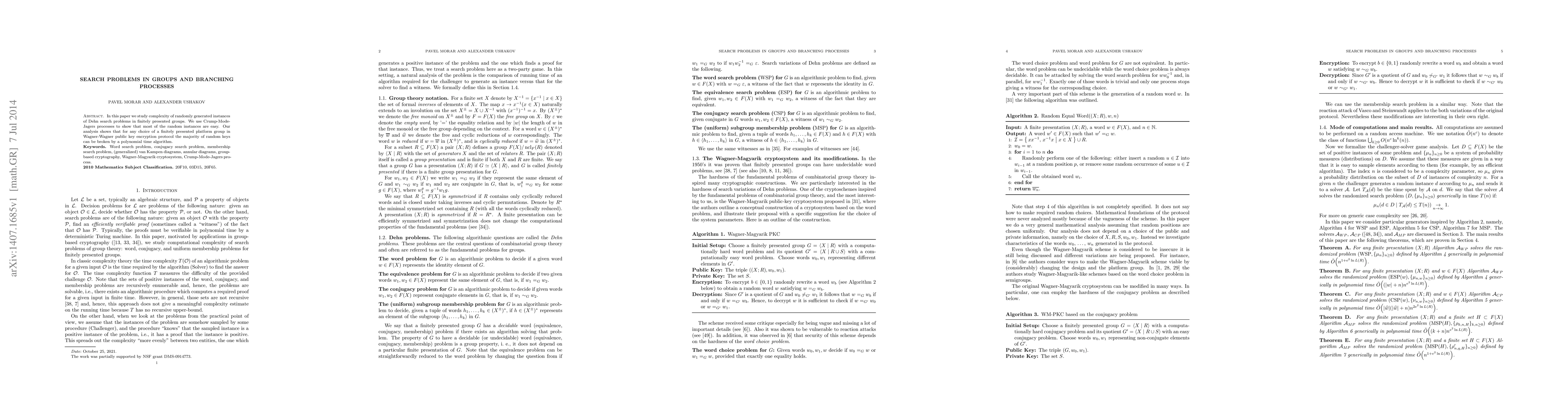 In this paper we study complexity of randomly generated instances of Dehn search problems in finitely presented groups. We use Crump-Mode-Jagers processes to show that most of the random instances are easy. Our analysis shows that for any choice of a finitely presented platform group in Wagner-Wagner public key encryption protocol the majority of random keys can be broken by a polynomial time algorithm.