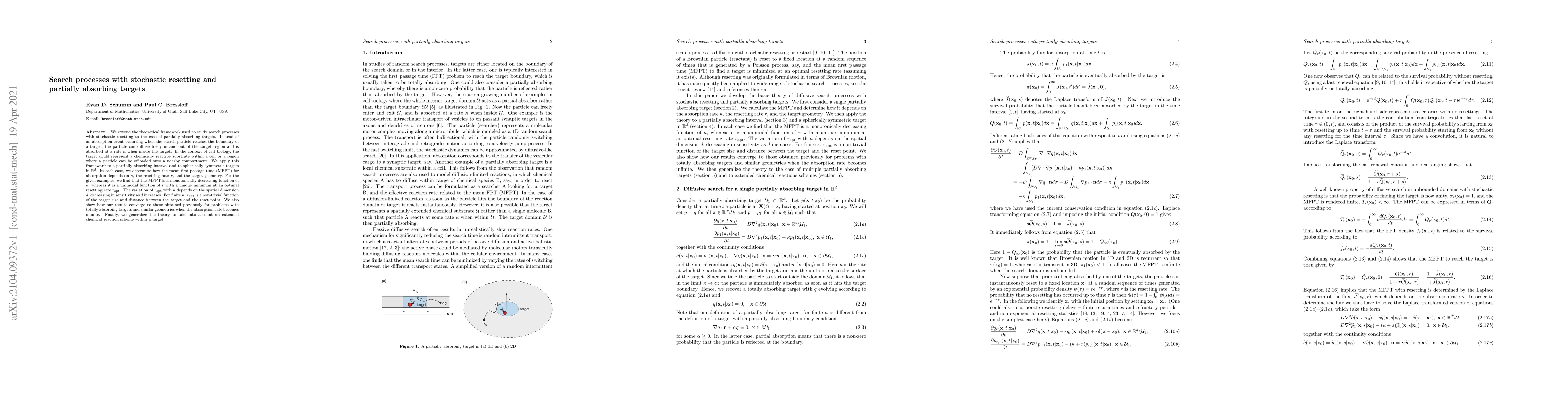 This paper extends search process theory to partially absorbing targets, where particles can diffuse in and out of the target region and are absorbed at a finite rate. It determines how mean first passage time varies with absorption rate, resetting rate, and target geometry, finding a unique optimal resetting rate that minimizes MFPT.