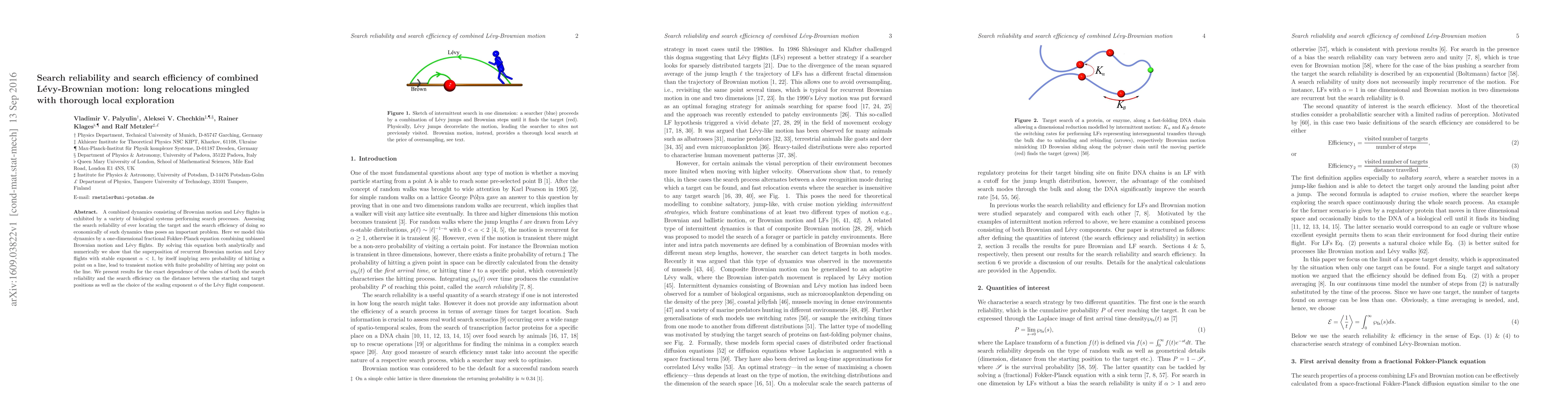 Researchers model biological search processes with combined Brownian motion and Lévy flights, finding that even in a one-dimensional space, the superposition of these motions can lead to transient motion with finite probability of reaching a target.