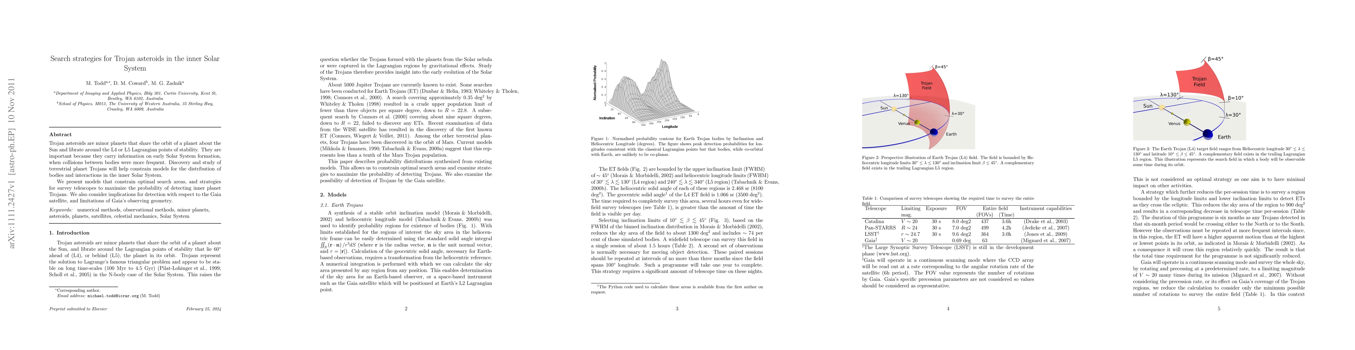 This paper presents models and strategies for detecting Trojan asteroids in the inner Solar System, focusing on optimal search areas and survey telescope methods. It also discusses the implications of using the Gaia satellite for detection, considering limitations in its observing geometry.
