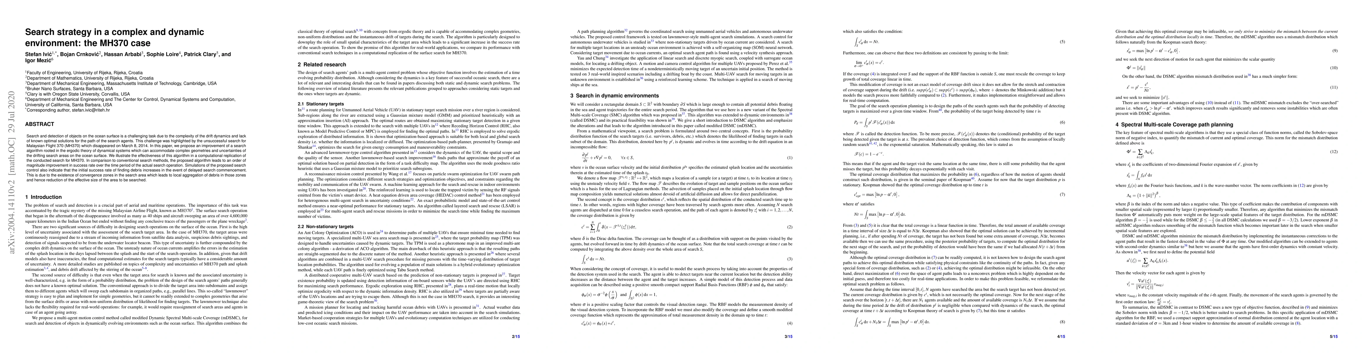 Search and detection of objects on the ocean surface is a challenging task due to the complexity of the drift dynamics and lack of known optimal solutions for the path of the search agents. This challenge was highlighted by the unsuccessful search for Malaysian Flight 370 (MH370) which disappeared on March 8, 2014. In this paper, we propose an improvement of a search algorithm rooted in the ergodic theory of dynamical systems which can accommodate complex geometries and uncertainties of the drifting search areas on the ocean surface. We illustrate the effectiveness of this algorithm in a computational replication of the conducted search for MH370. In comparison to conventional search methods, the proposed algorithm leads to an order of magnitude improvement in success rate over the time period of the actual search operation. Simulations of the proposed search control also indicate that the initial success rate of finding debris increases in the event of delayed search commencement. This is due to the existence of convergence zones in the search area which leads to local aggregation of debris in those zones and hence reduction of the effective size of the area to be searched.