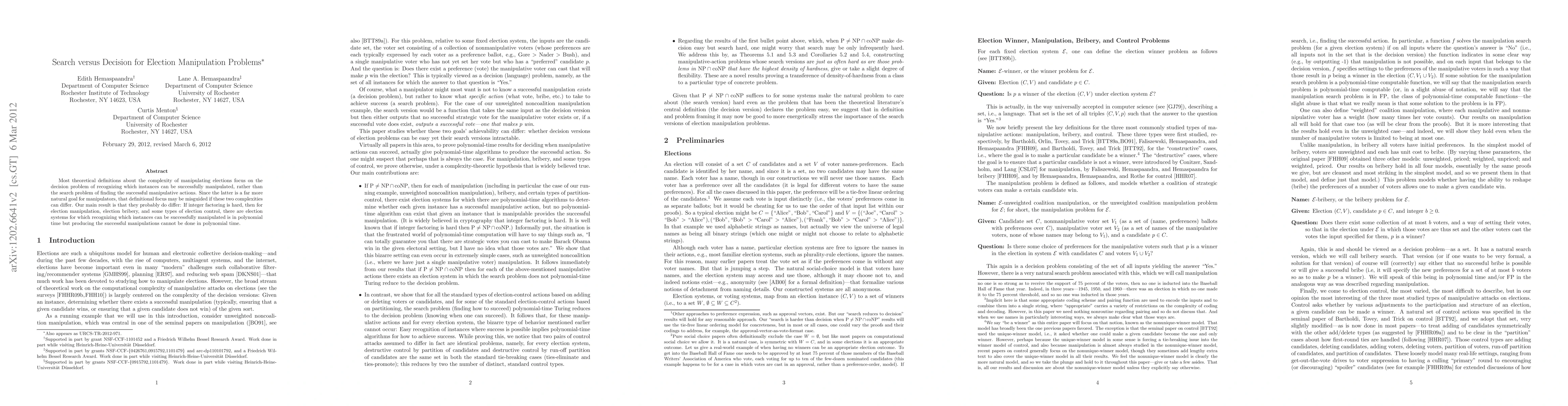This paper investigates the complexities of election manipulation, distinguishing between decision and search problems. It concludes that under certain cryptographic assumptions, recognizing manipulable election instances can be polynomial-time solvable, while finding the specific manipulations may not be, highlighting a potential discrepancy in these complexities.