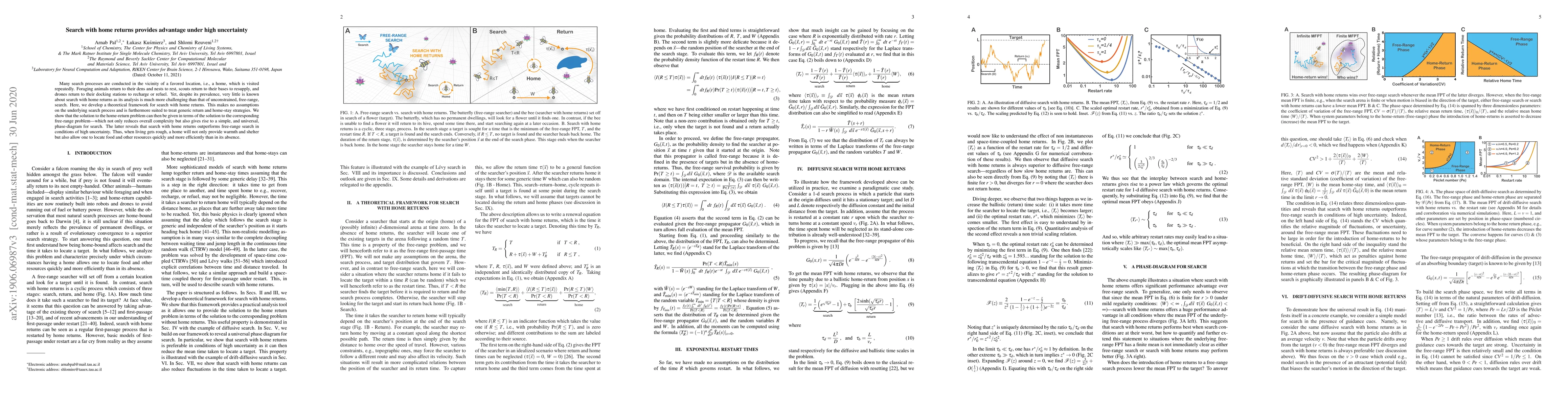 A new framework for search with home returns shows that returning to a familiar location can improve efficiency under high uncertainty conditions, outperforming free-range search in such situations.