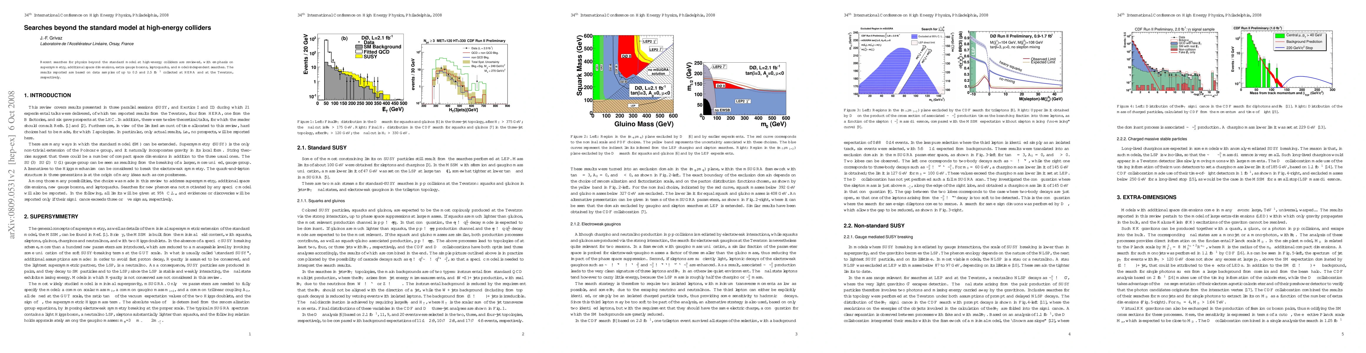 Recent searches for physics beyond the standard model at high-energy colliders are reviewed, with emphasis on supersymmetry, additional space dimensions, extra gauge bosons, leptoquarks, and model-independent searches. The results reported are based on data samples of up to 0.5 and 2.5 fb-1 collected at HERA and at the Tevatron, respectively.