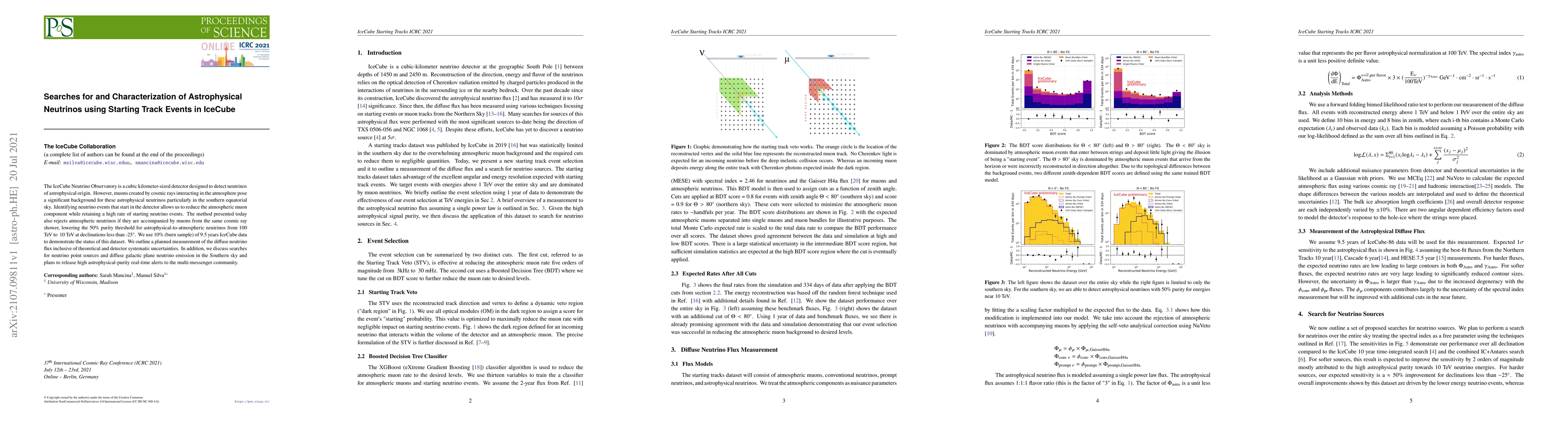 The IceCube Neutrino Observatory employs starting track events to detect astrophysical neutrinos while minimizing atmospheric muon background, enhancing purity thresholds. Using 10% of 9.5 years of data, the method demonstrates improved detection and future plans include diffuse flux measurements and real-time alerts for multi-messenger astronomy.