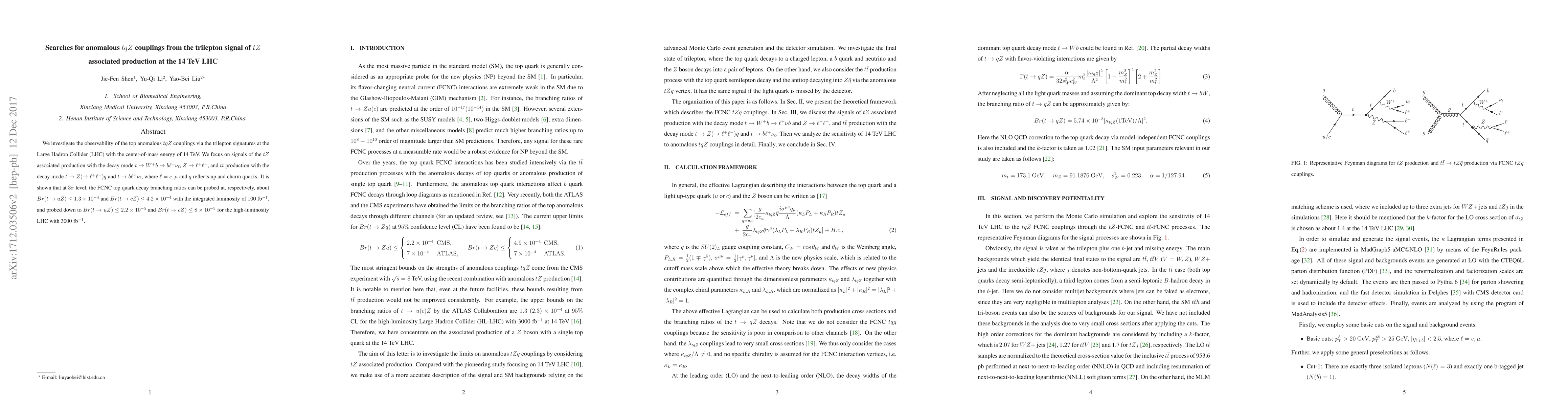 We investigate the observability of the top anomalous $tqZ$ couplings via the trilepton signatures at the Large Hadron Collider~(LHC) with the center-of-mass energy of 14 TeV. We focus on signals of the $tZ$ associated production with the decay mode $t\to W^{+}b\to b\ell^{+}\nu_{\ell}$, $Z\to \ell^{+}\ell^{-}$, and $t\bar{t}$ production with the decay mode $\bar{t}\to Z(\to \ell^{+}\ell^{-})\bar{q}$ and $t\to b\ell^{+}\nu_{\ell}$, where $\ell=e, \mu$ and $q$ reflects up and charm quarks. It is shown that at $3\sigma$ level, the FCNC top quark decay branching ratios can be probed at, respectively, about $Br(t\to uZ) \leq 1.3\times 10^{-4}$ and $Br(t\to cZ) \leq 4.2\times 10^{-4}$ with the integrated luminosity of 100 fb$^{-1}$, and probed down to $Br(t\to uZ) \leq 2.2\times 10^{-5}$ and $Br(t\to cZ) \leq 8\times 10^{-5}$ for the high-luminosity LHC with 3000 fb$^{-1}$.