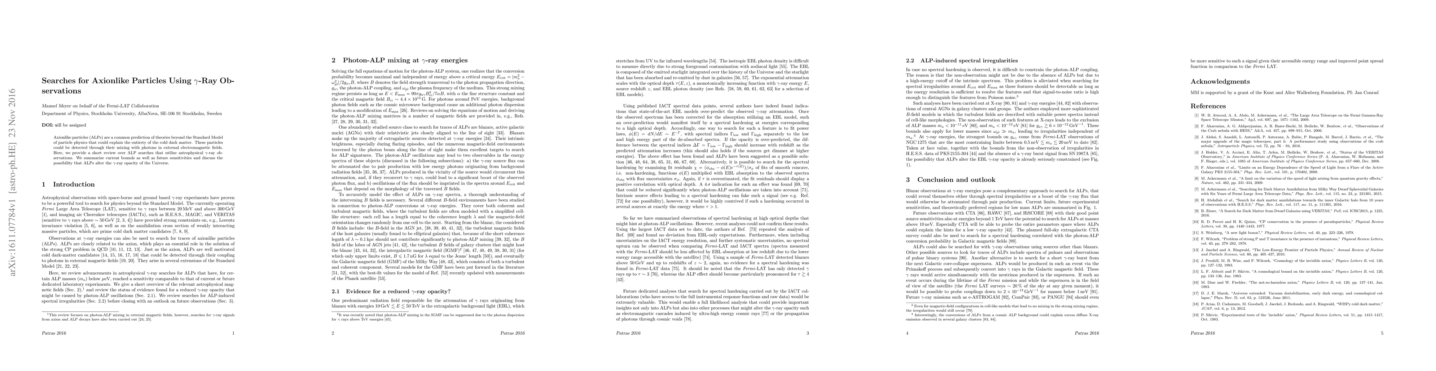 This paper reviews the search for axionlike particles (ALPs) using gamma-ray observations, summarizing current detection bounds and future sensitivities while discussing the potential impact of ALPs on gamma-ray opacity in the Universe.