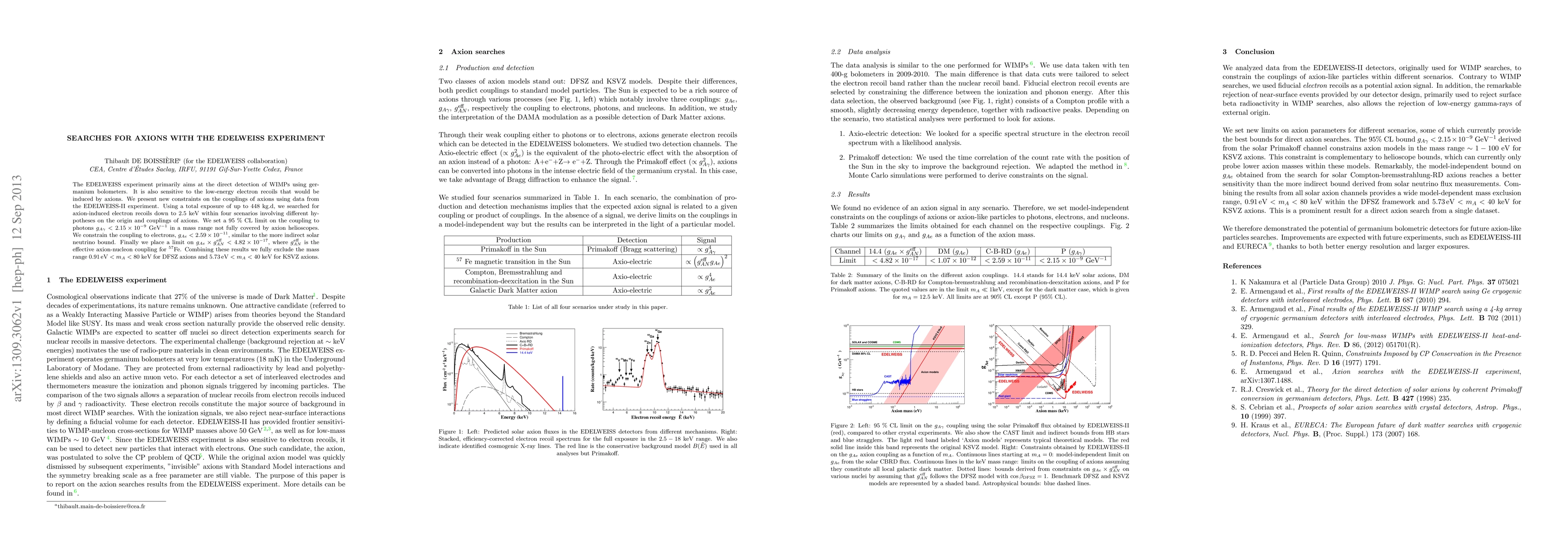 couplings of axions using data from the EDELWEISS-II experiment. Using a total